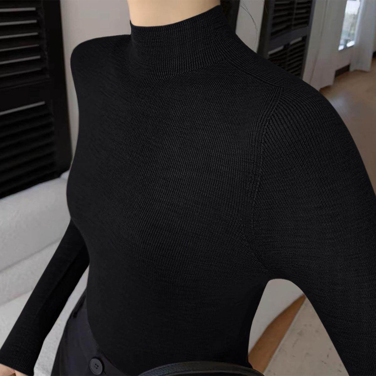JOYIASS法式高级灰色半高领针织打底毛衣女秋冬新款修身内搭气质