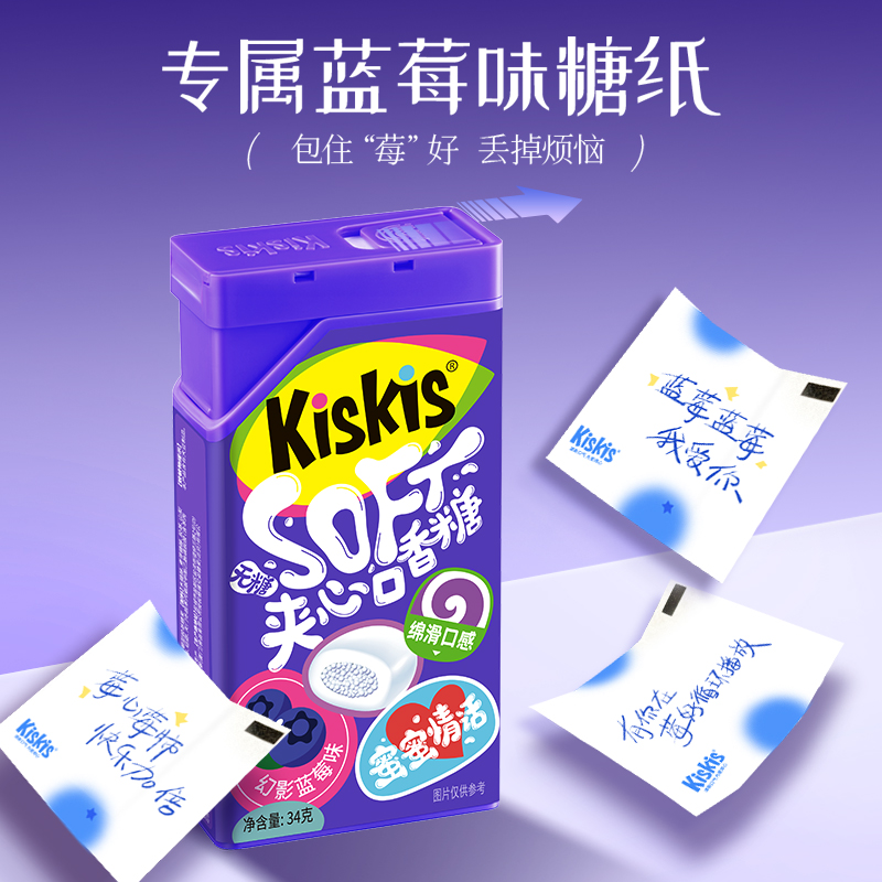 KisKis酷滋情话口香糖34g无糖木糖醇夹心水果味清新口气表白糖