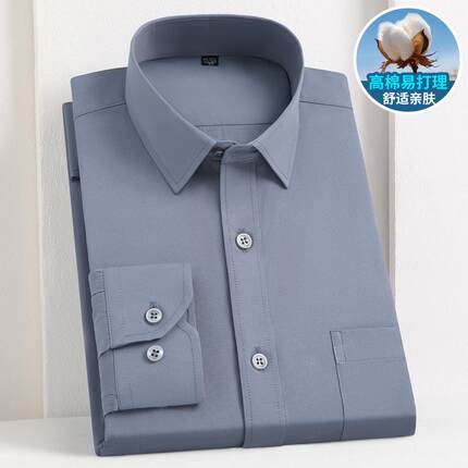 春季灰色衬衫男长袖商务修身