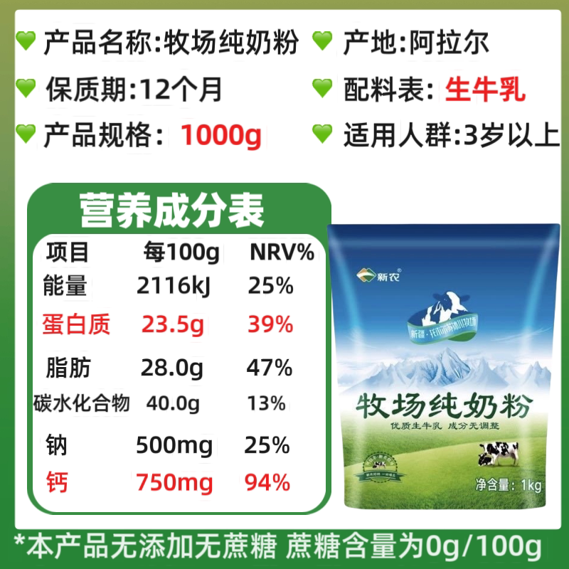 新农乳业新农纯牛奶粉无添加