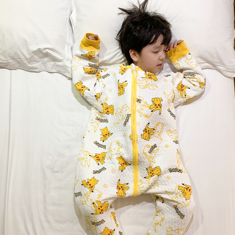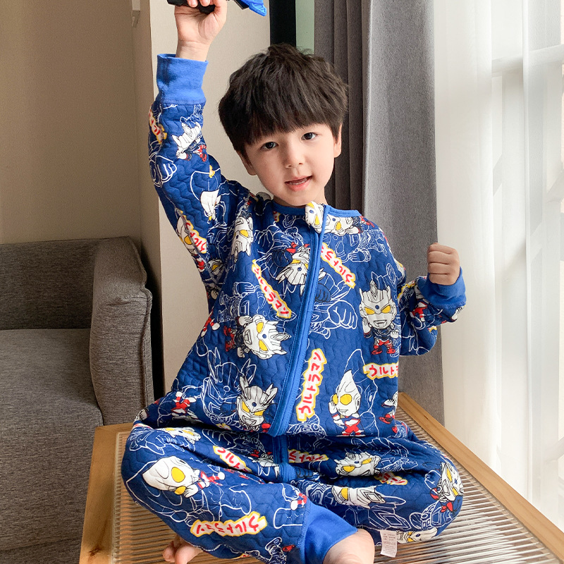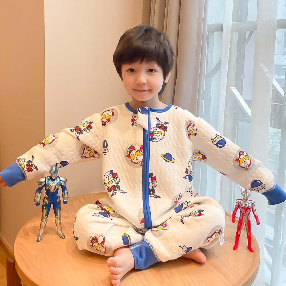 宝宝睡袋儿童秋冬季三层夹棉无骨长袖连体衣男童奥特曼保暖防踢被