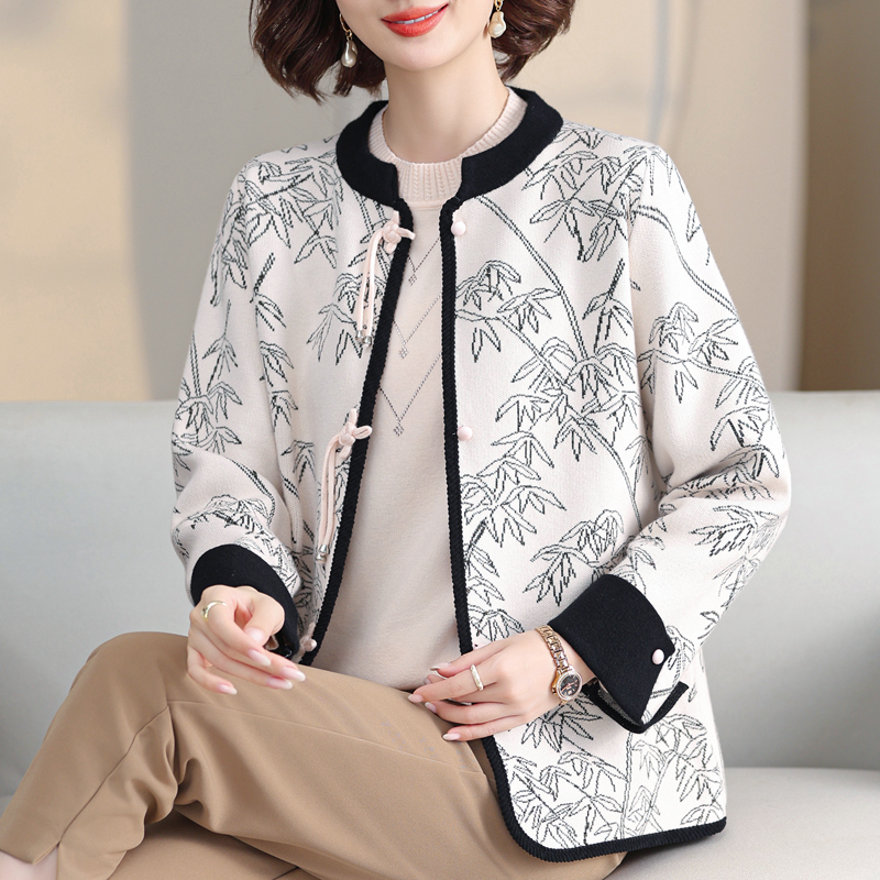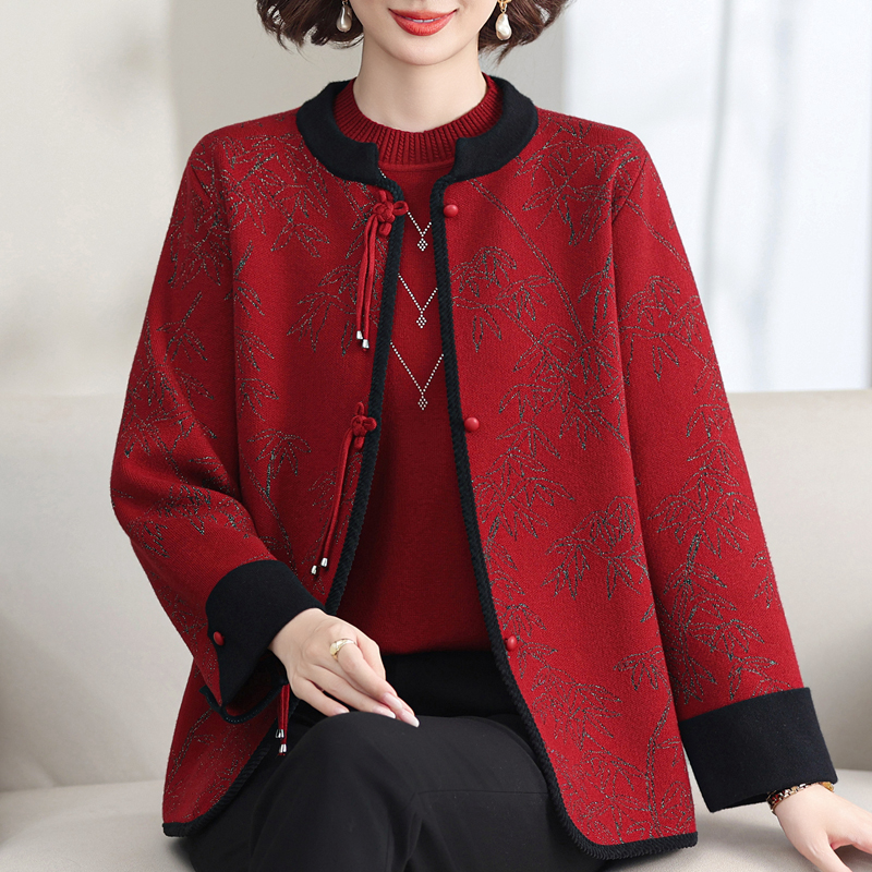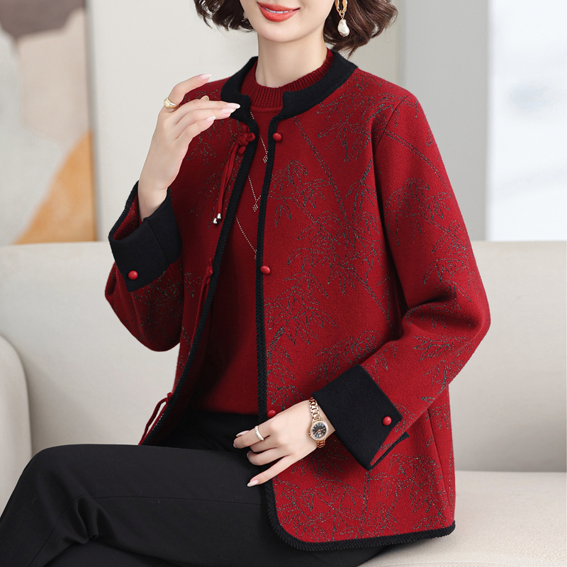 中老年妈妈新中式国风洋气秋冬外套加肥加大码女装两件套针织开衫