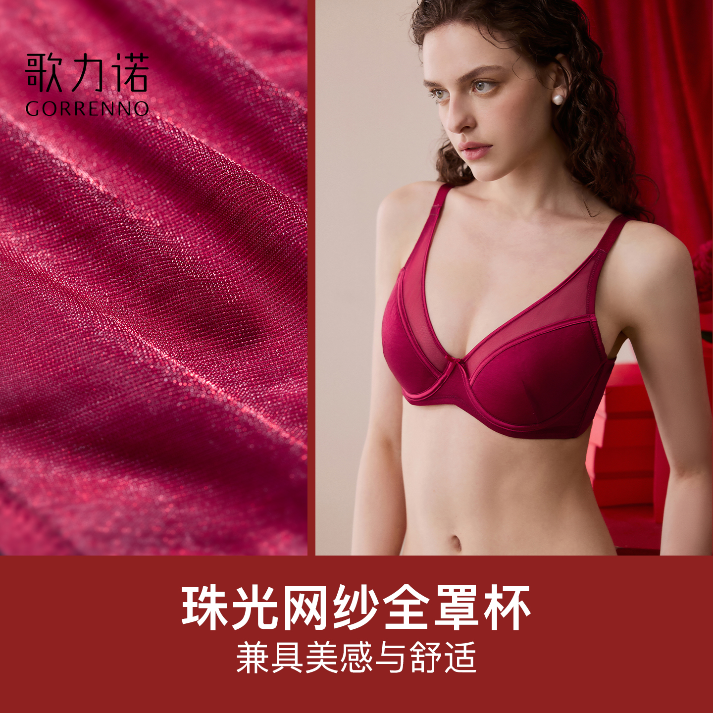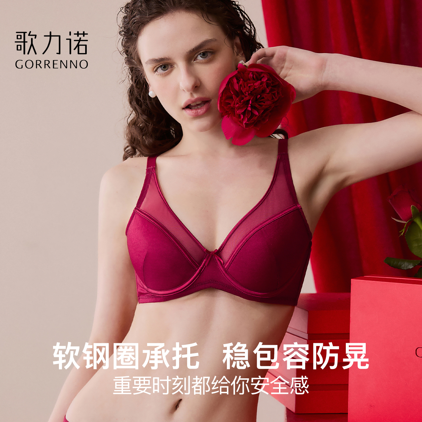 歌力诺红色内衣女新娘结婚本命年大胸显小收副乳防下垂文胸罩套装