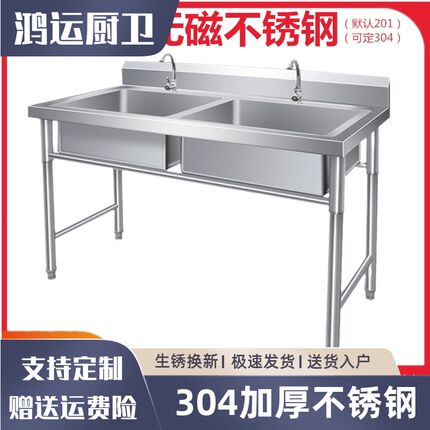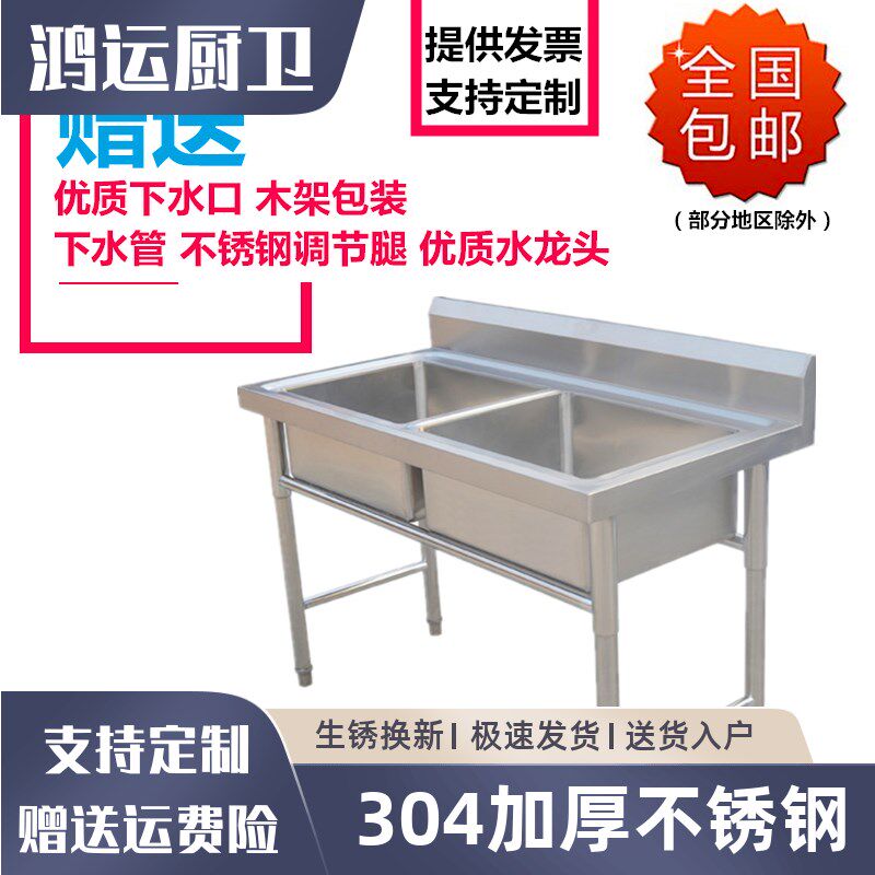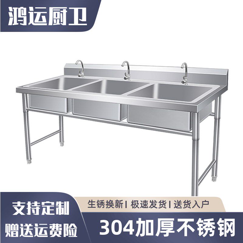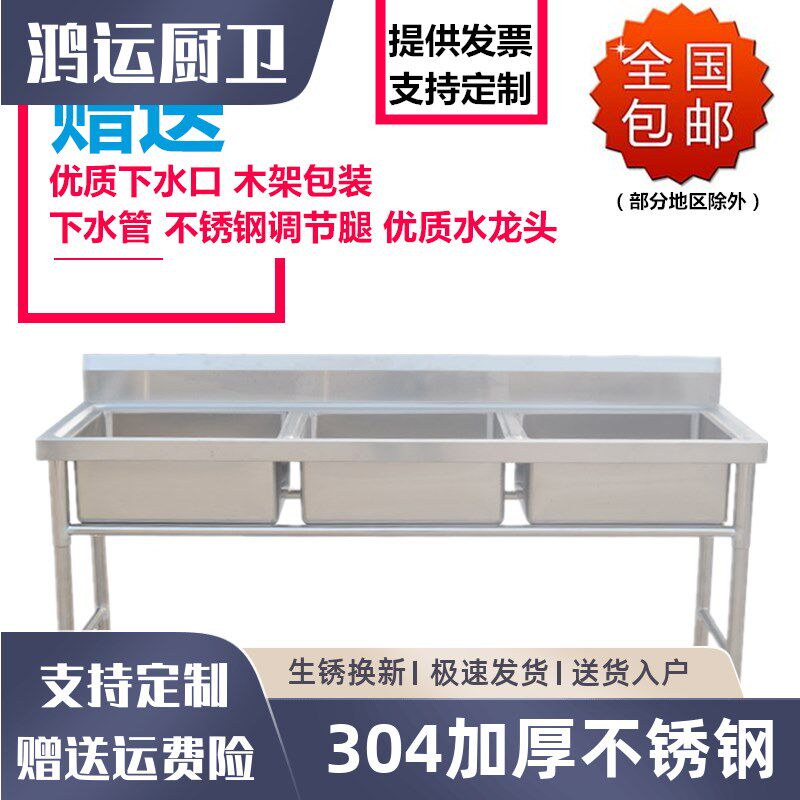 304商用不锈钢单水槽水池三双槽双池洗菜洗碗池厨房可定制洗刷盆