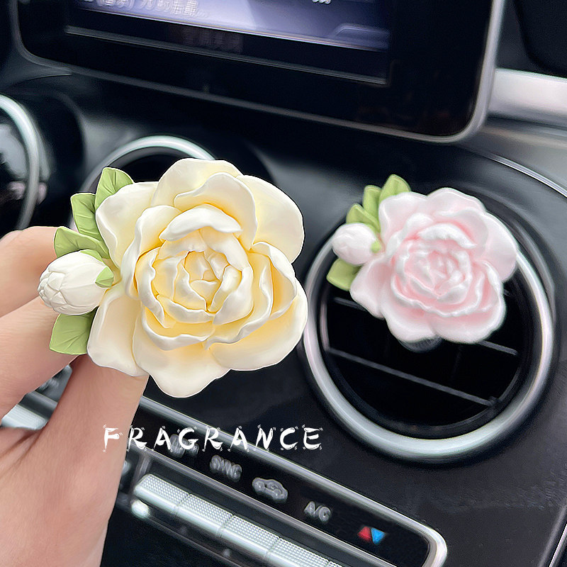 茉莉花车载香水香薰汽车空调出风口装饰扩香石花朵车内摆件女神款