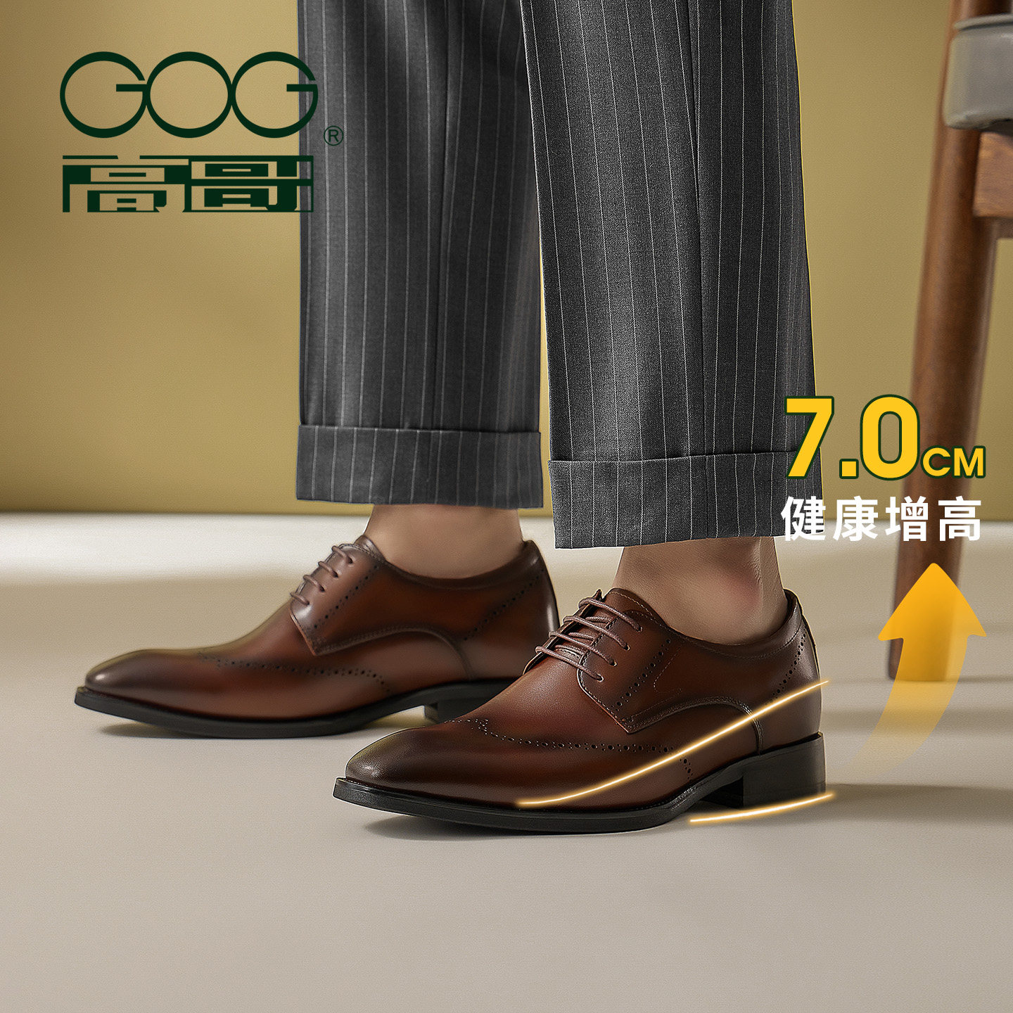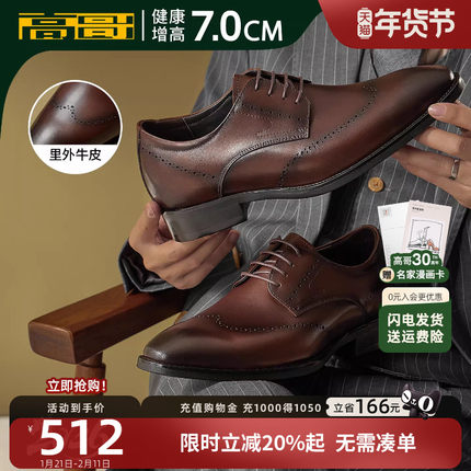 高哥增高皮鞋男正装商务布洛克雕花男鞋轻便结婚鞋冬季鞋子内增高