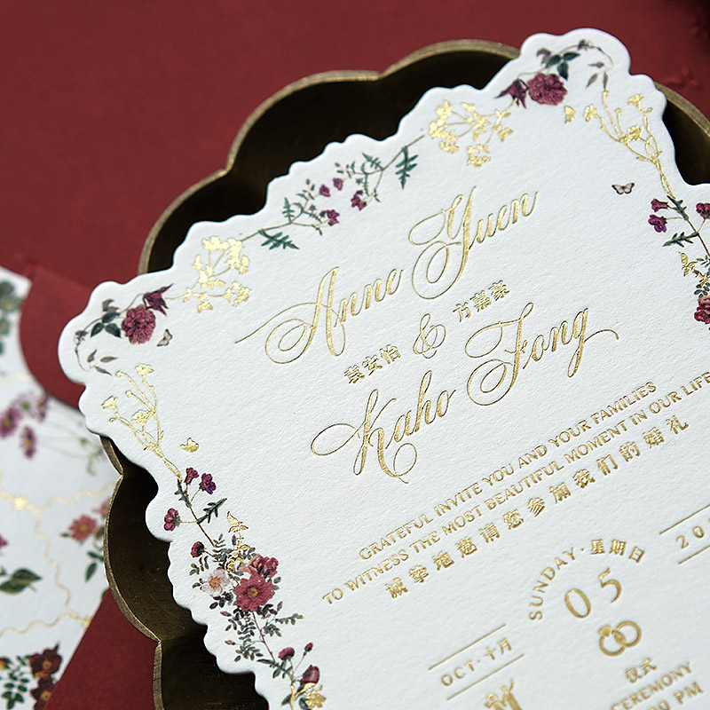 浮雕婚礼请柬烫金凸版定制请帖凹印酒红喜帖邀请函波尔多红贺卡