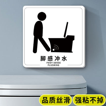 亚克力脚感冲水贴纸智能马桶提示贴脚感冲水标识墙贴自动感应温馨提示牌男女卫生间指示牌厕所标识牌便后冲厕