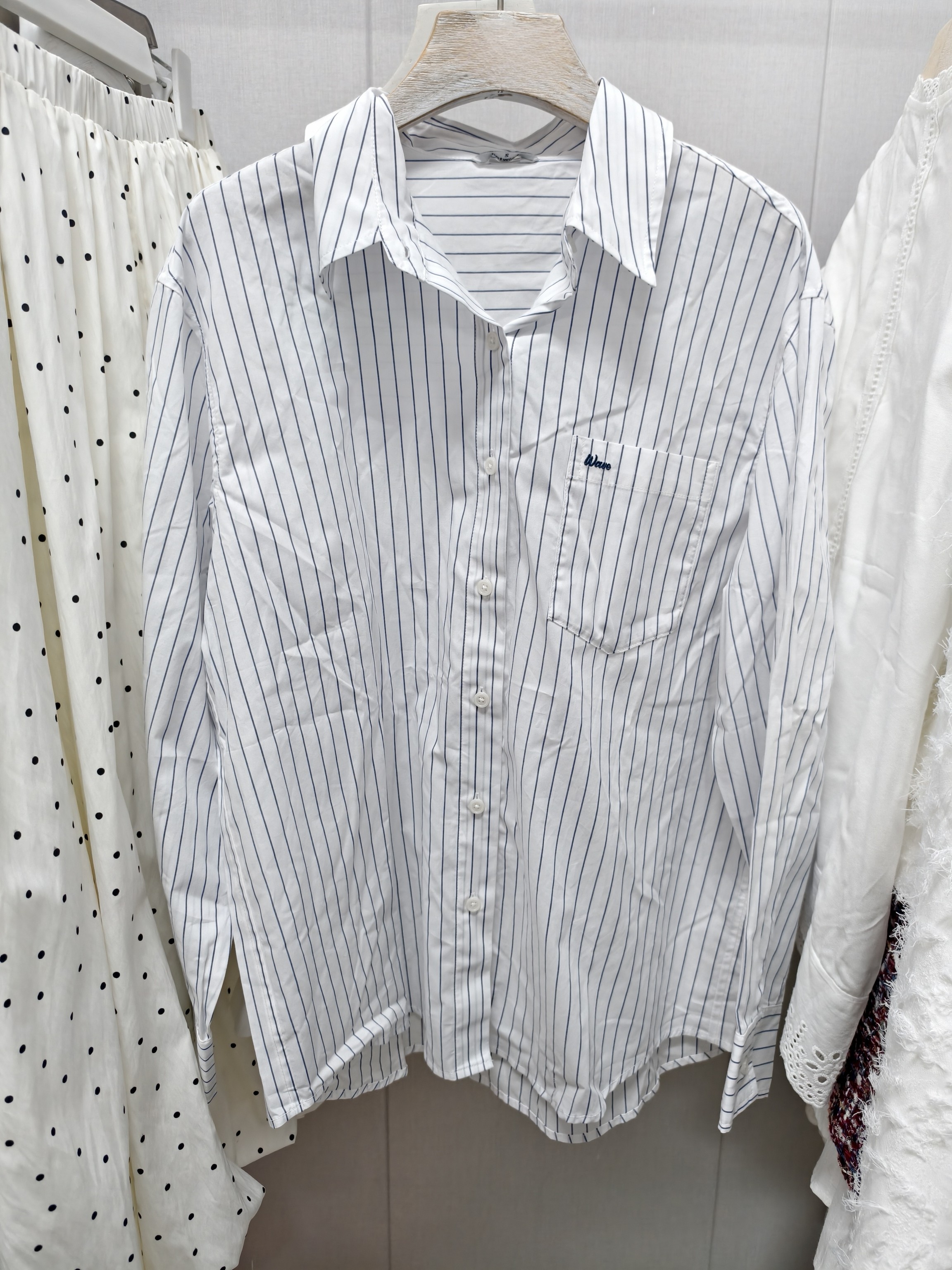 热2025年秋季新款女士基础衬衫宽松版条纹长袖休闲衬衫F02W25300