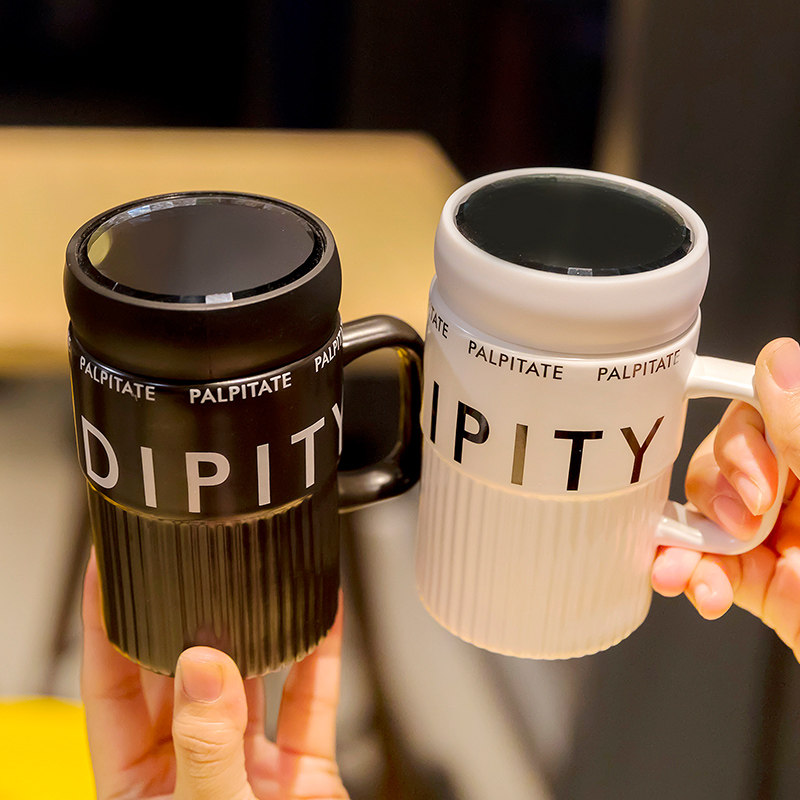 陶瓷杯女士新款2025水杯高颜值带盖杯子男生款茶杯情侣拧盖马克杯
