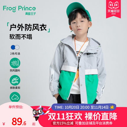 青蛙王子童装男童春季加绒外套中大童春装男孩中长款连帽风衣春秋