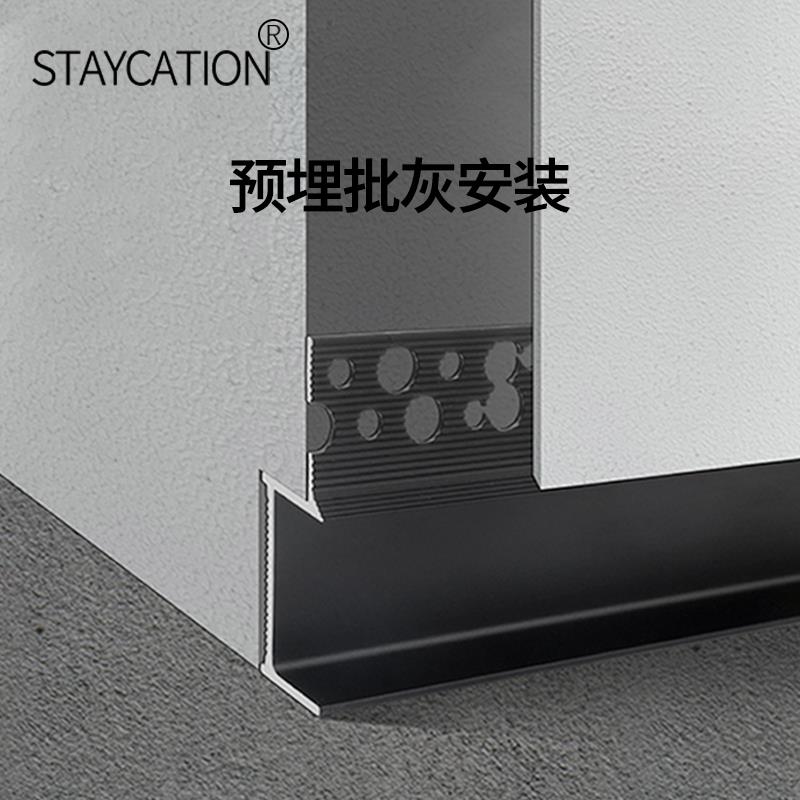预埋批灰内嵌踢脚线嵌入式2cm极简金属贴脚线铝合金圆弧形地脚线