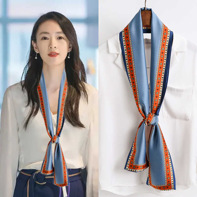 明星同款细窄长条小丝巾女春秋洋气时尚韩国百搭韩版装饰领巾围巾