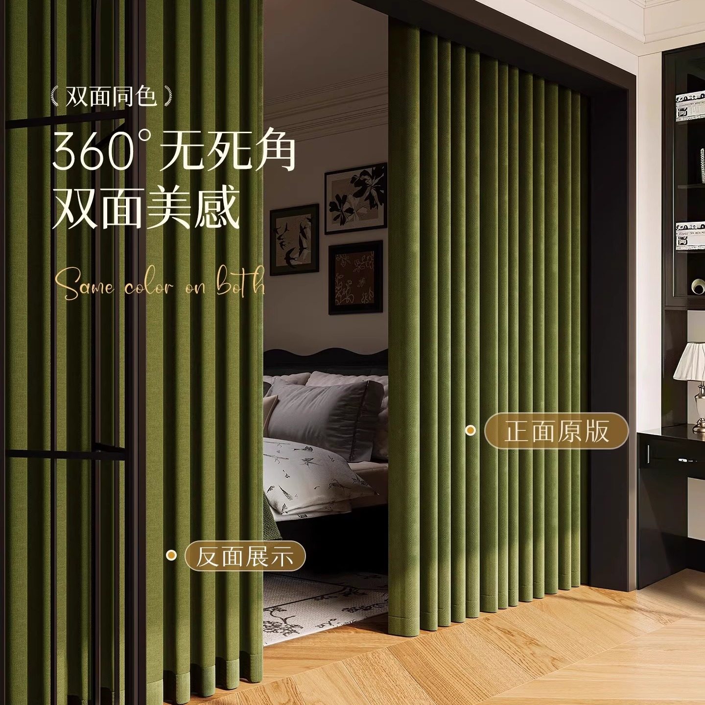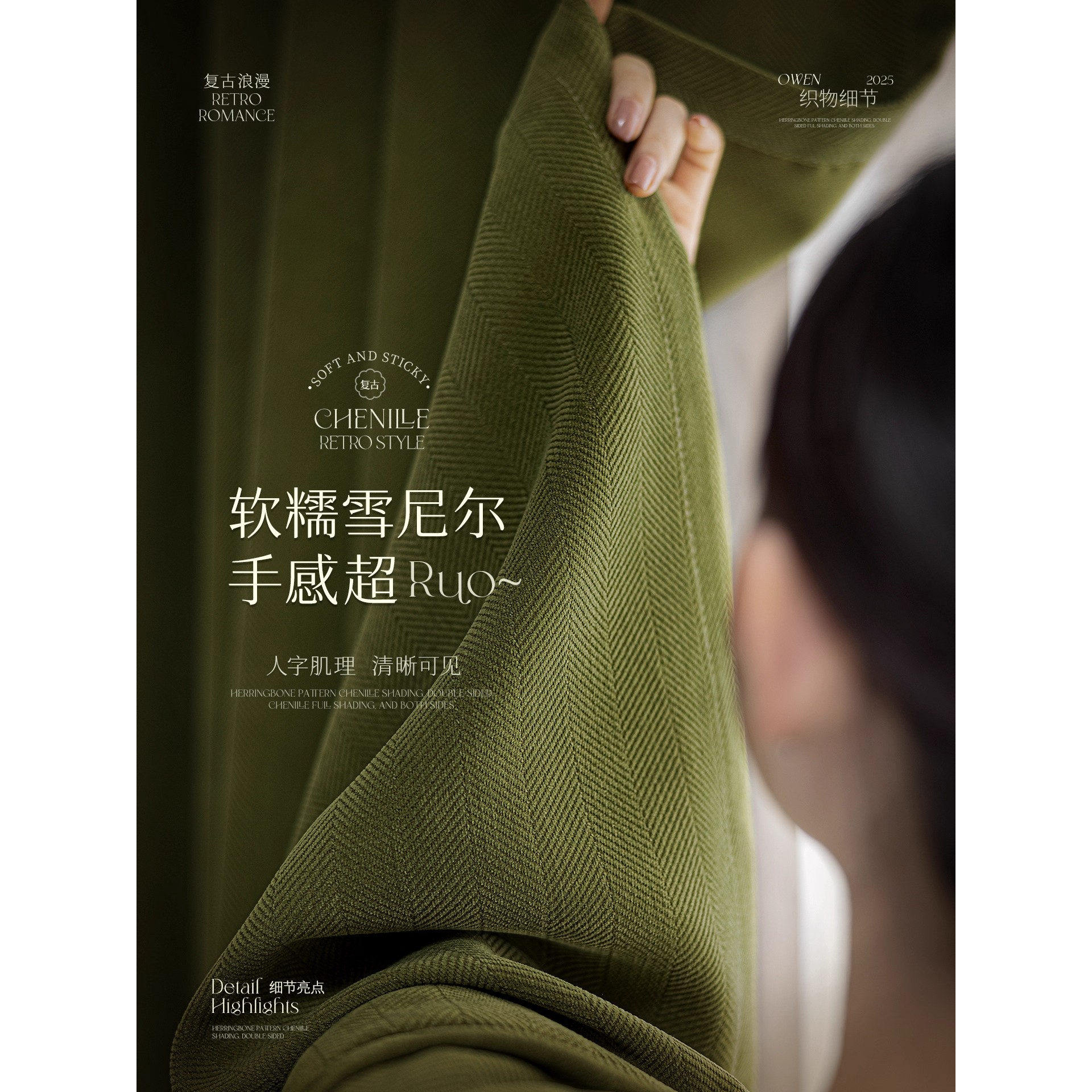 2025新款雪尼尔绿色遮光窗帘布