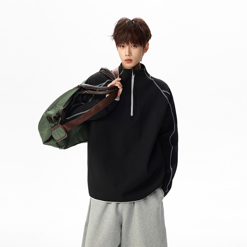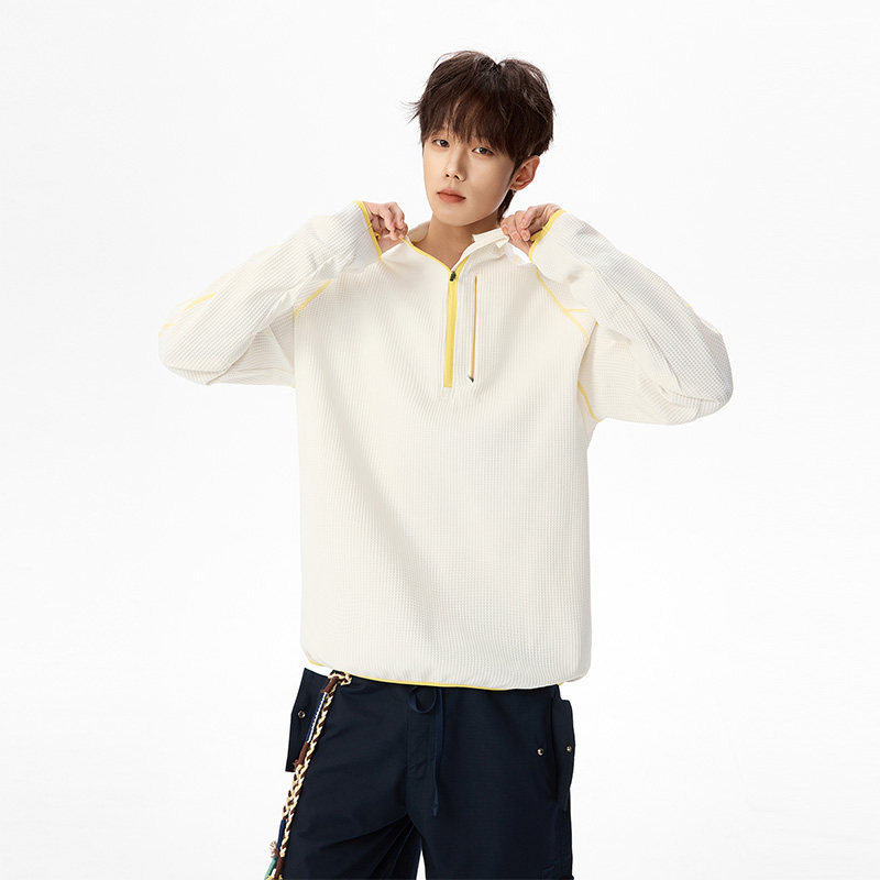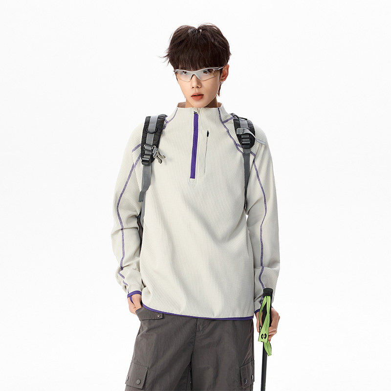 迈特优哈苏线撞色防晒运动长袖男春秋国潮牌半拉链宽松情侣装t恤