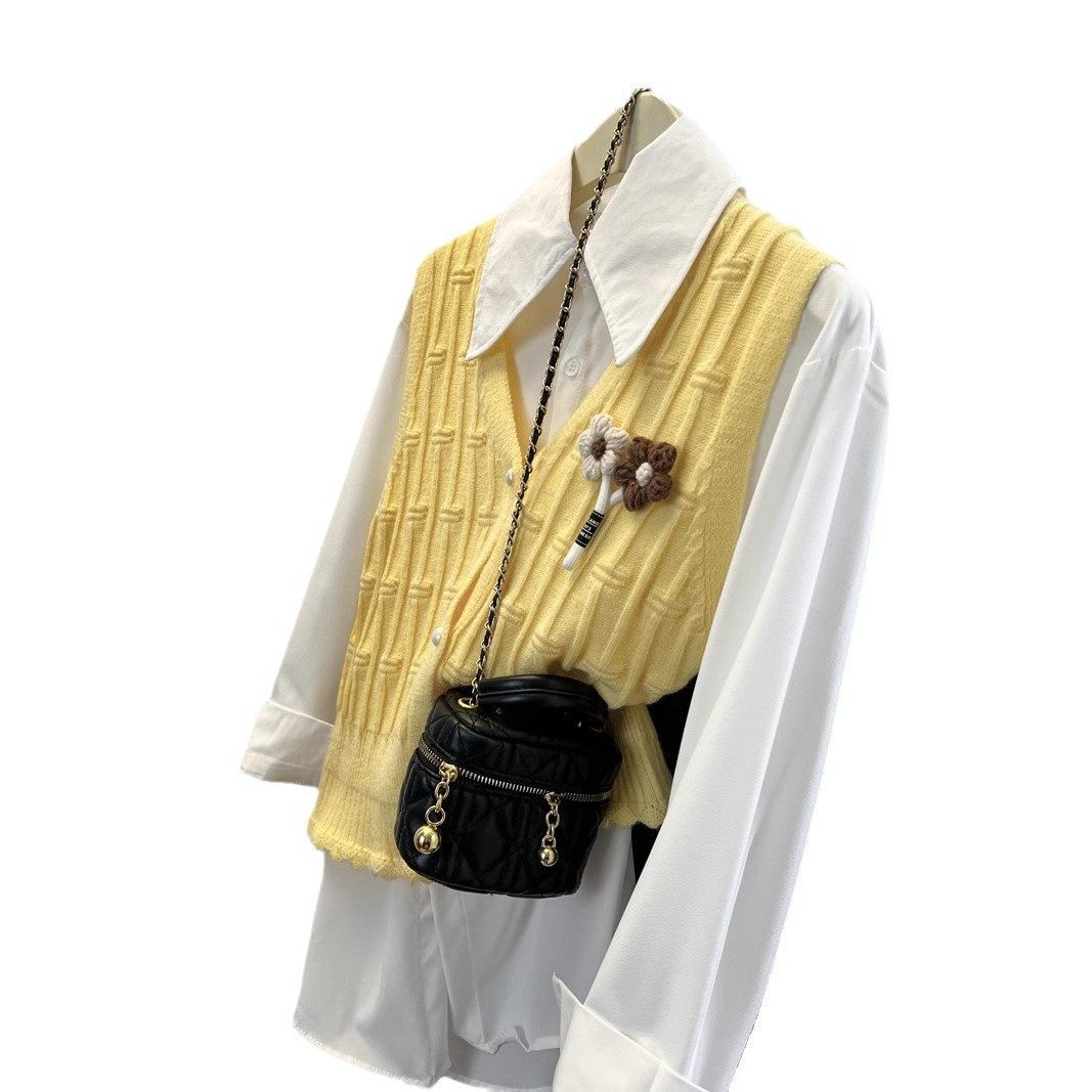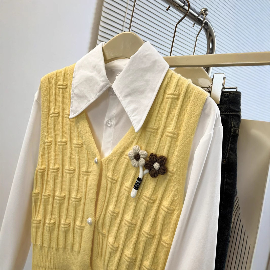 法式针织马甲背心女2025春秋新款时尚外搭毛衣叠穿衬衫两件套上衣