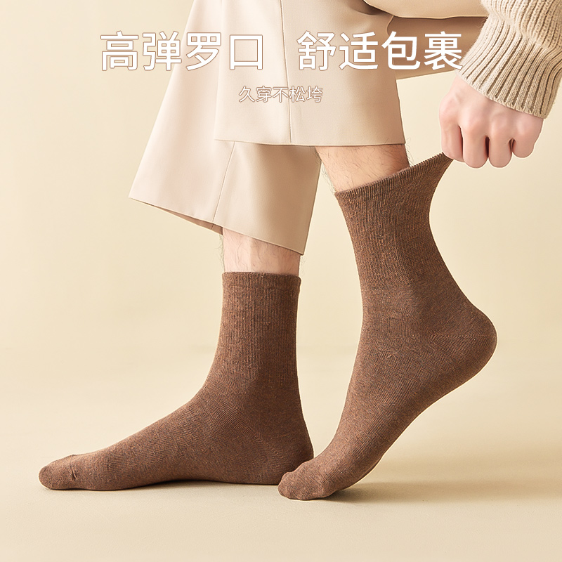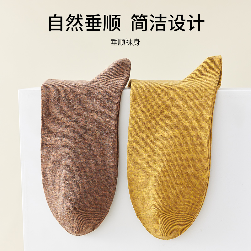 猫人男士袜子土黄色纯棉中筒袜100%全棉莫兰迪色防臭棉袜男生男款