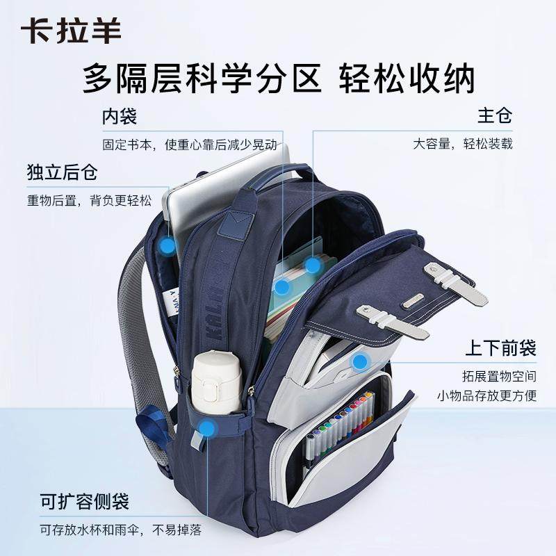 卡拉羊中学生云朵书包女减负防下坠四到六年级大容量双肩包男5064