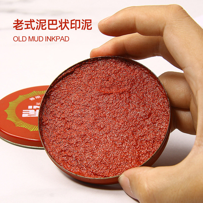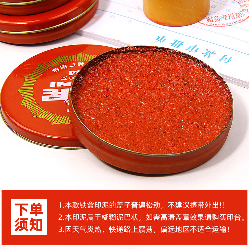工字牌印泥老式泥巴状印泥朱砂印泥大号红色印尼印台铁壳印油按手印指纹手指画小号印章印泥盒财会财务用品