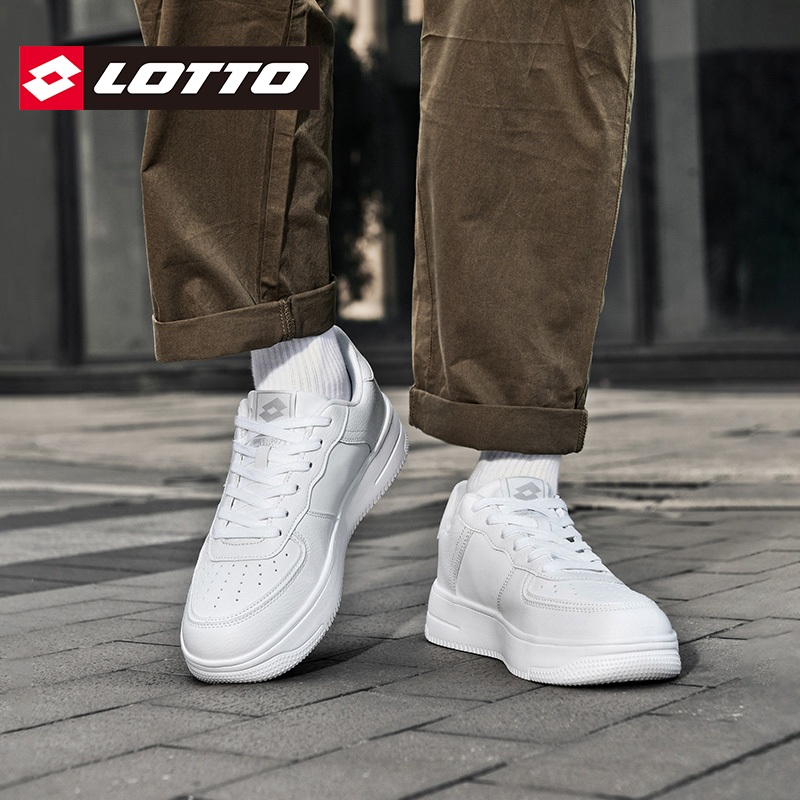LOTTO乐途男白色透气低帮板鞋2025秋冬季新款空军一号休闲小白鞋