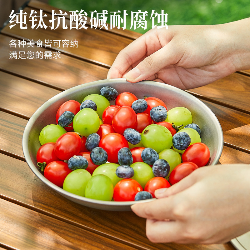 纯钛盘子户外露营便携果盘菜盘旅行餐盘碟子家用钛餐具零食盘托盘