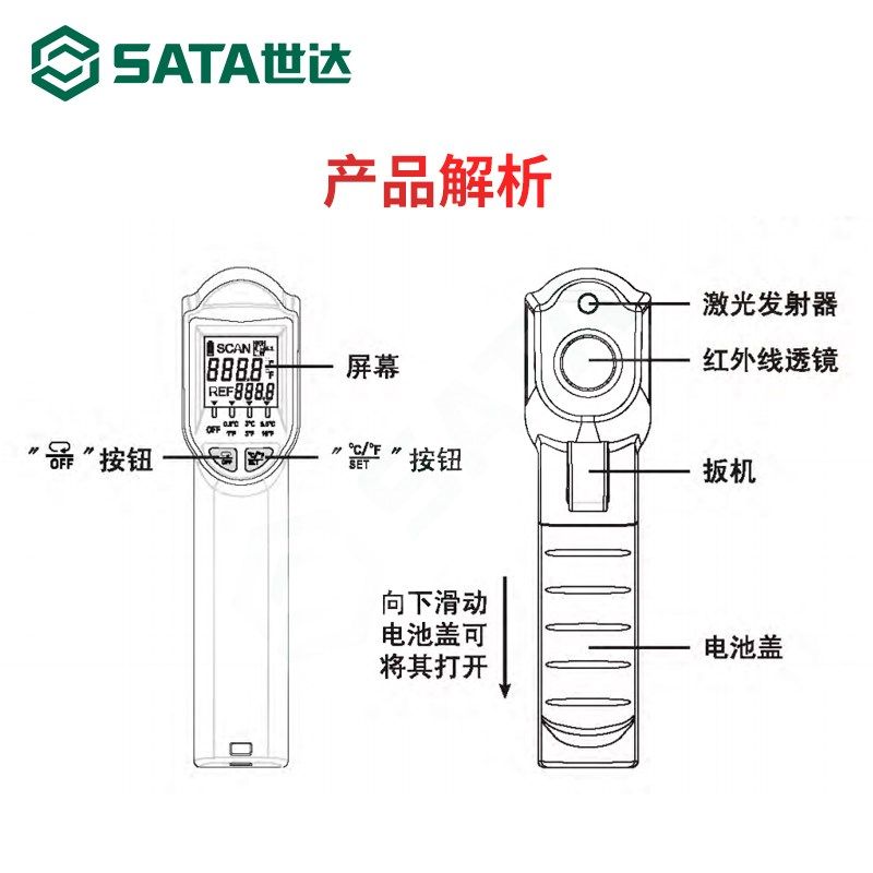 世达测温仪手持式红外线测温枪食品工业高精度温度计03032/03036