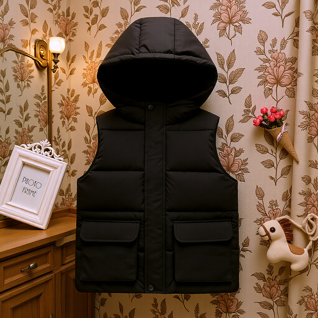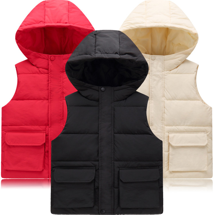 儿童羽绒棉马甲春秋季连帽中大男童女童坎肩宝宝外穿保暖马夹长款