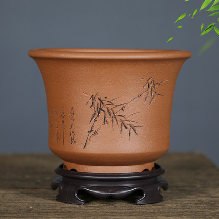 宜兴紫砂兰花盆古典小号君子惠兰花盆墨兰兰花专用送塑料托盘滤网