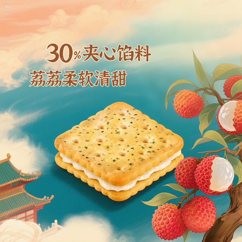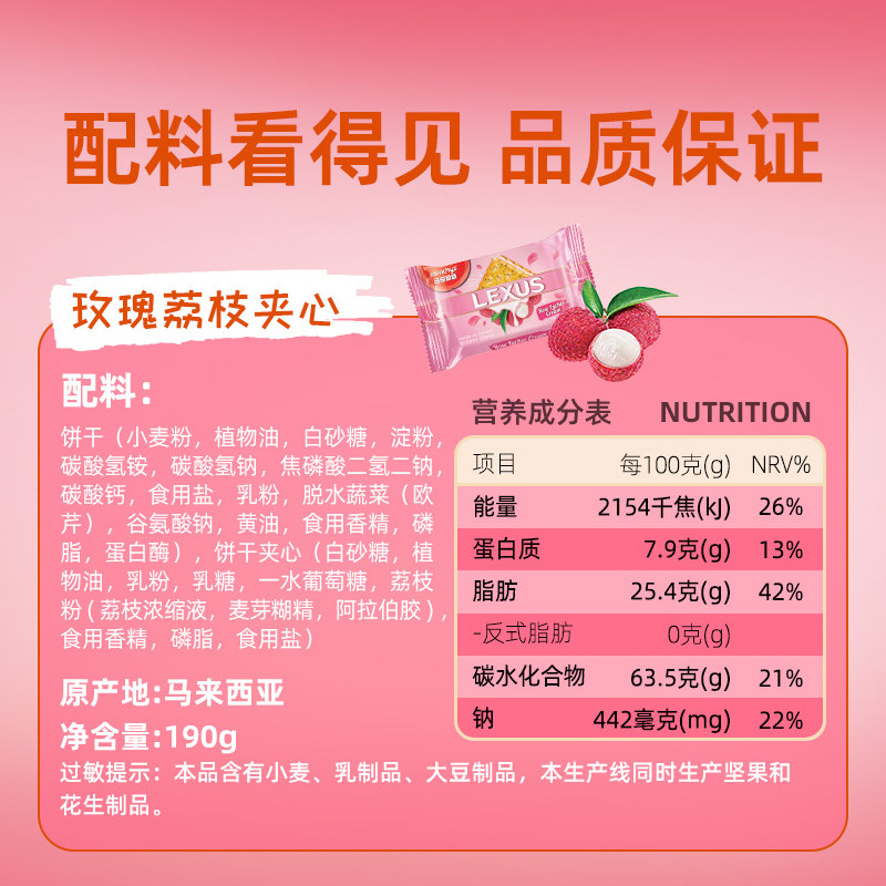 马奇新新玫瑰荔枝味夹心饼干