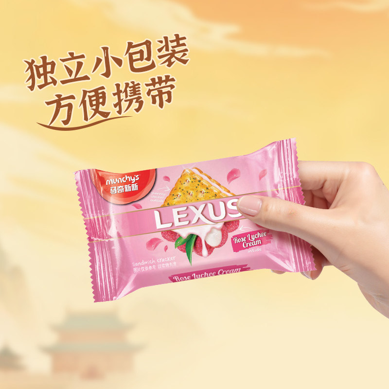马来西亚进口Munchy's/马奇新新新玫瑰荔枝味夹心饼干儿童零食品