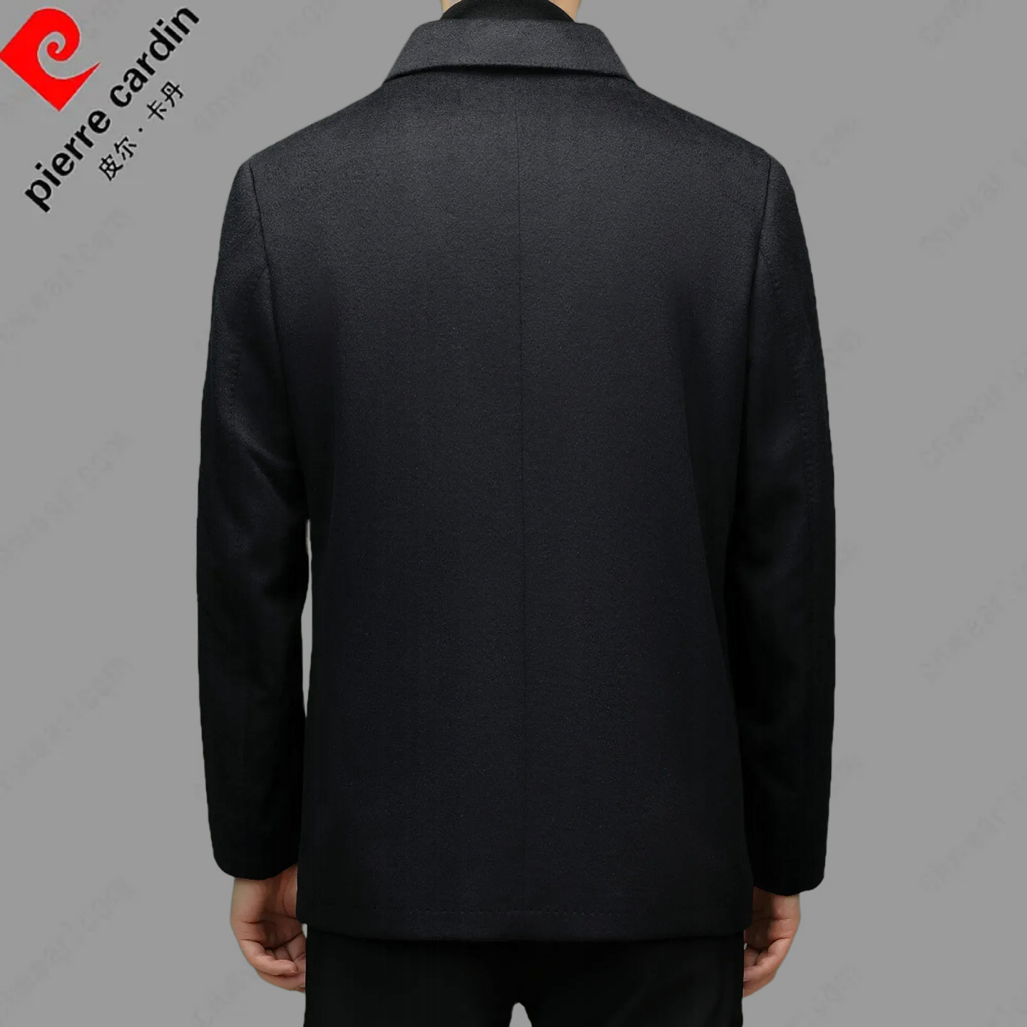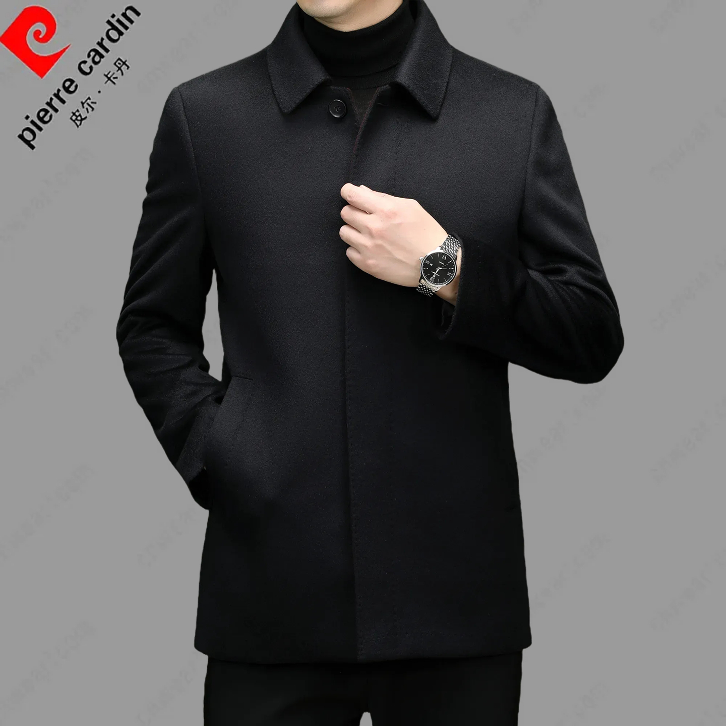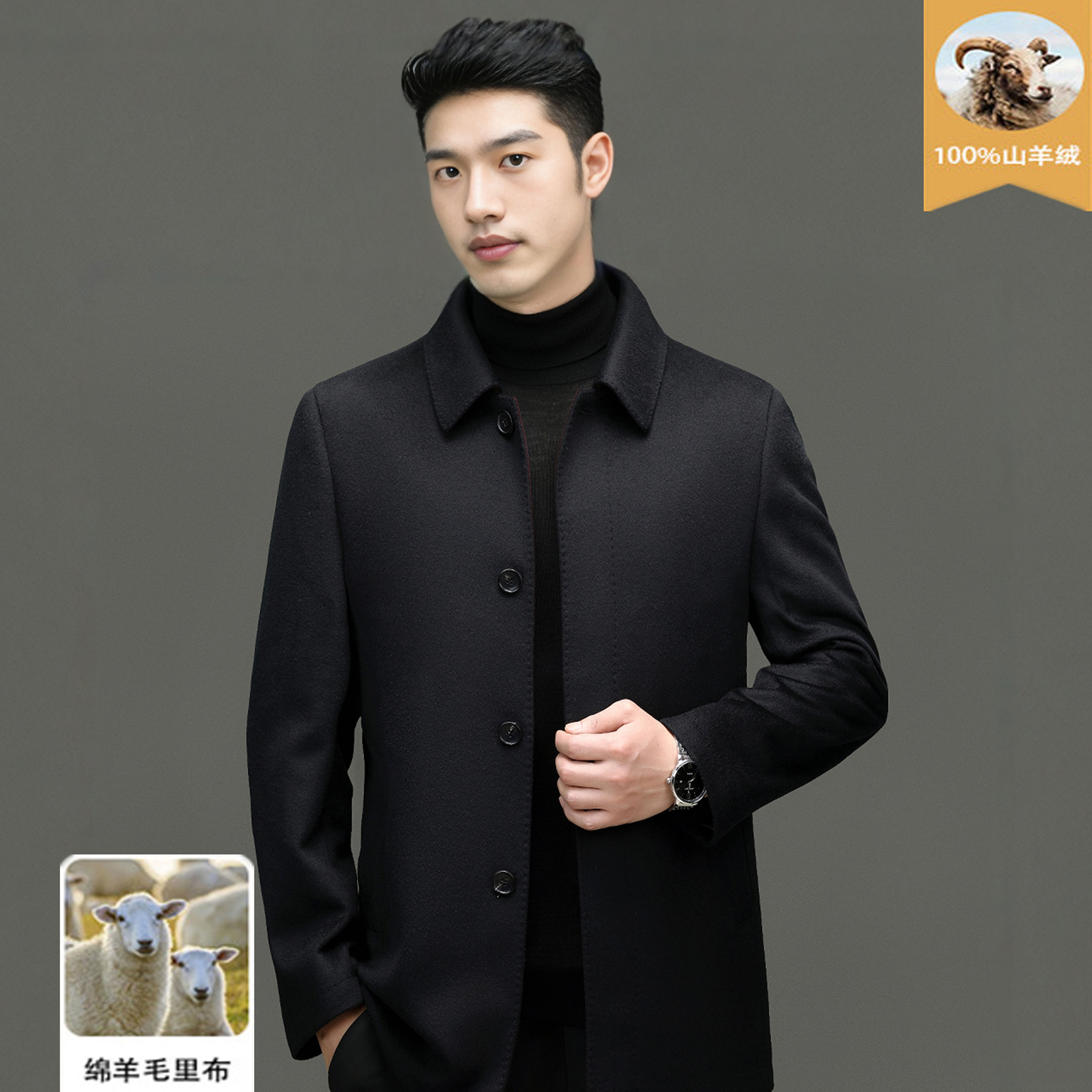 皮尔卡丹100%山羊绒夹克男秋中年休闲高端中长款双面毛呢大衣外套