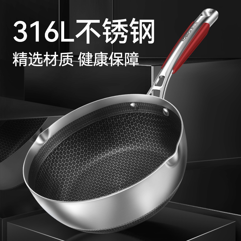 康巴赫官方第五代小资炒锅316L不锈钢蜂窝不粘锅电磁炉通用