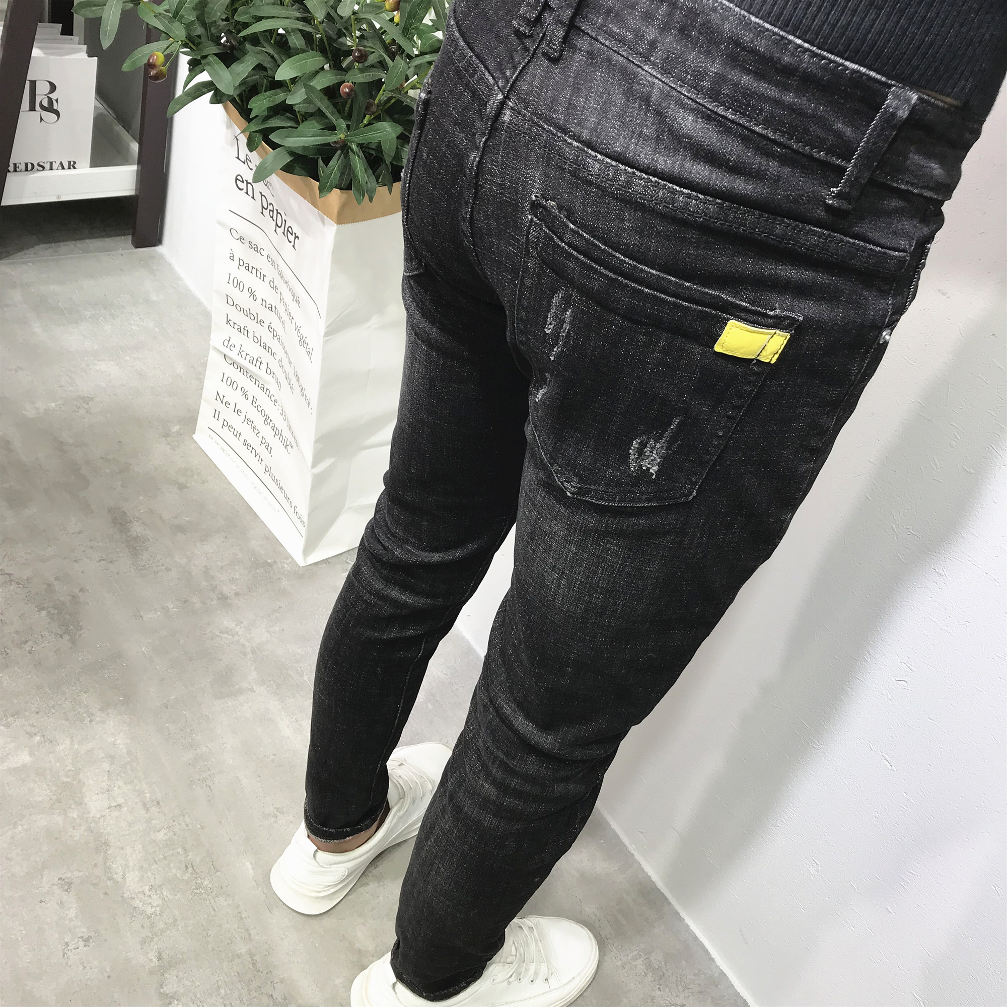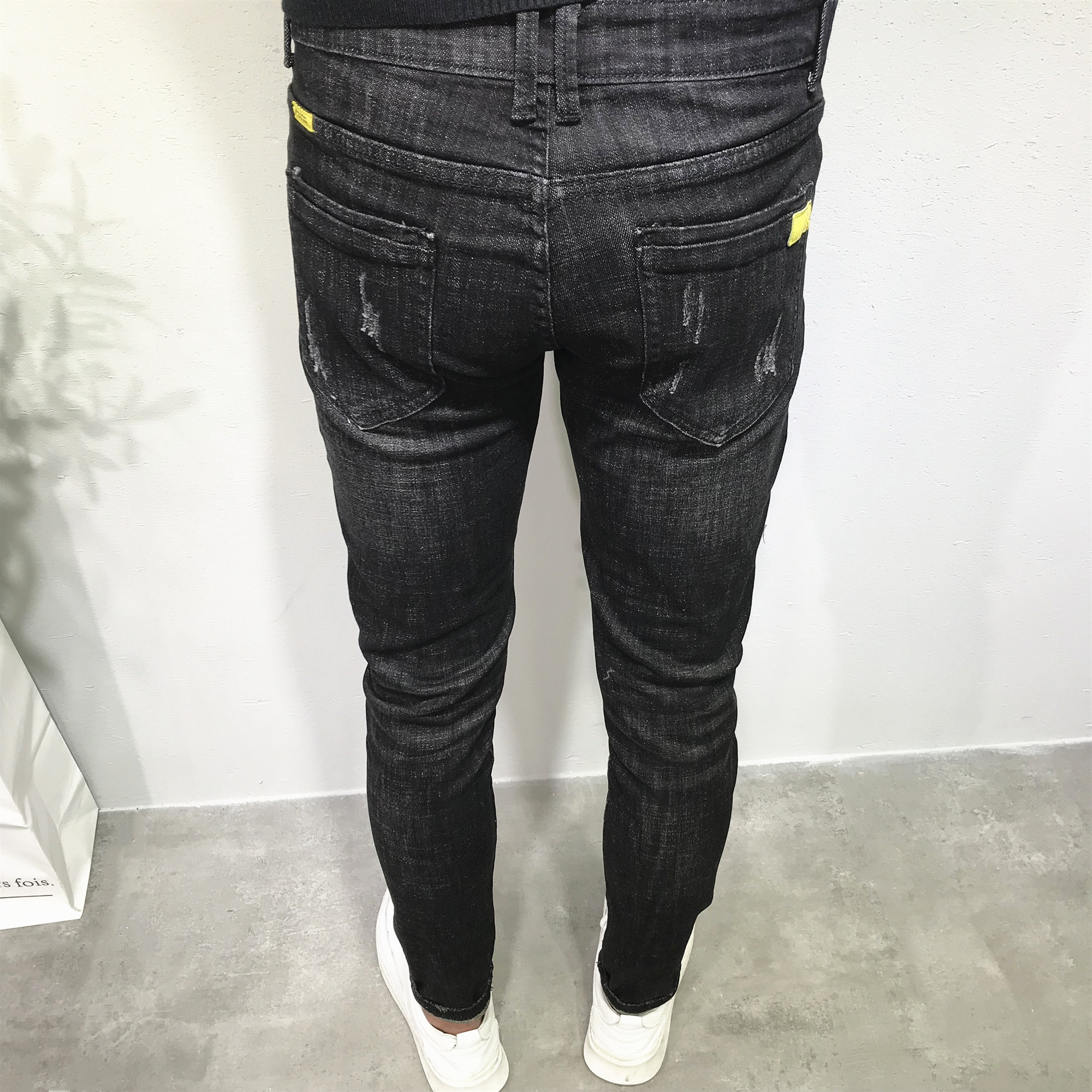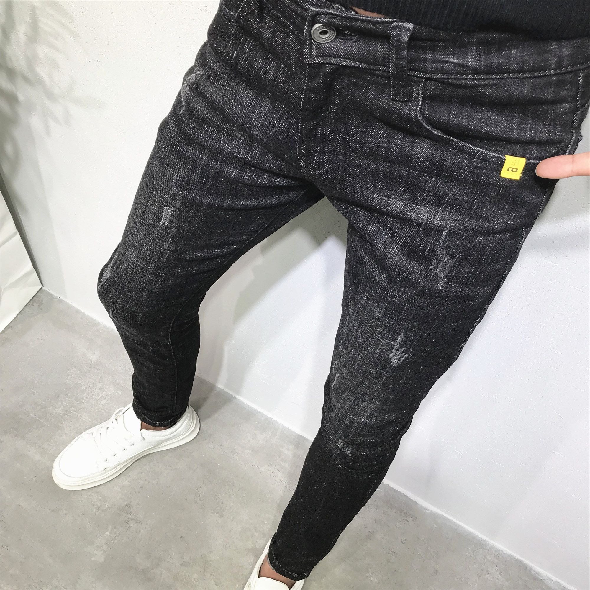 好穿爆了 贴标猫须经典百搭黑色修身小脚显瘦九分牛仔裤男新春夏