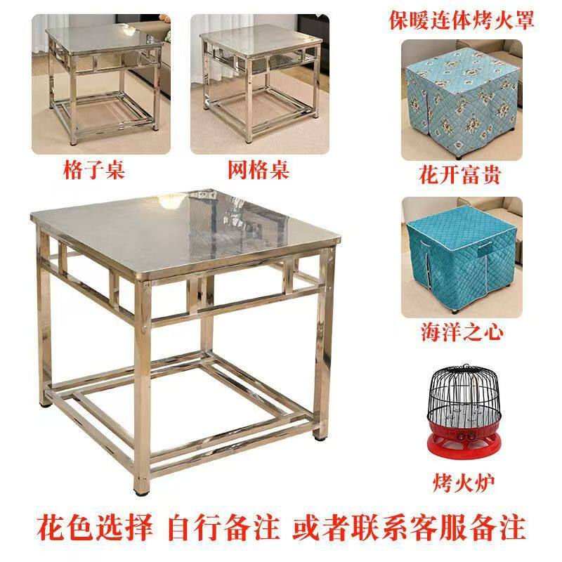 新款加厚正方形家用不锈钢烤火桌子带烘衣网电取暖拆卸组装吃饭桌