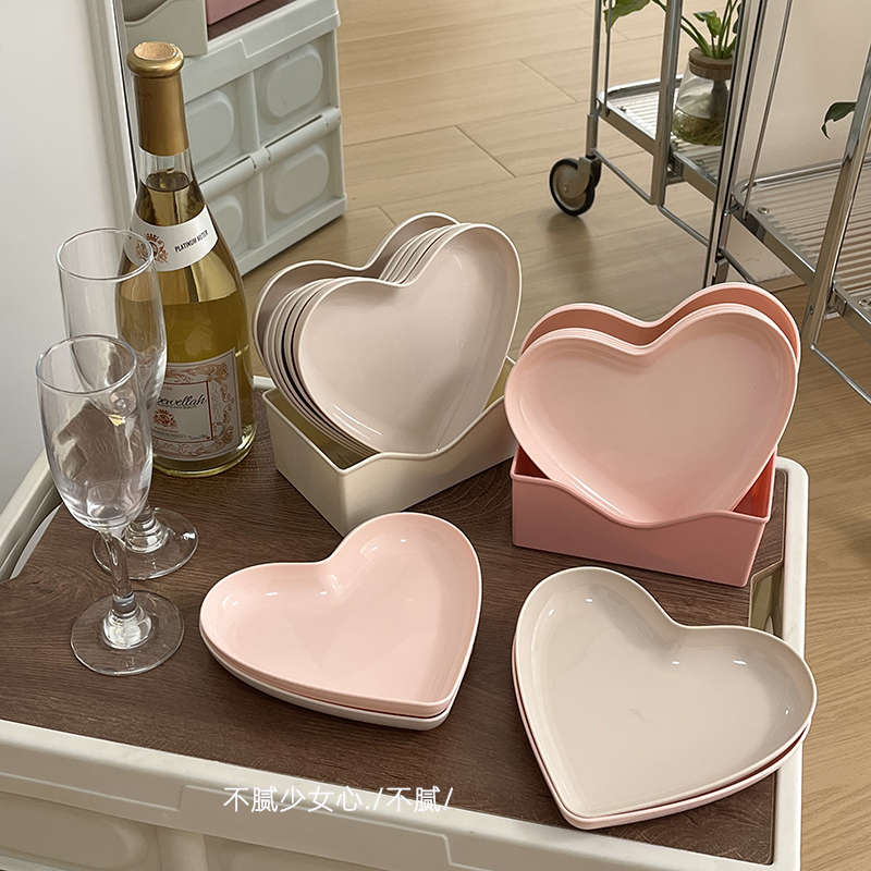 不腻少女心 心形盘子蛋糕零食爱心盘 吐骨碟水果碟零食碟小盘子