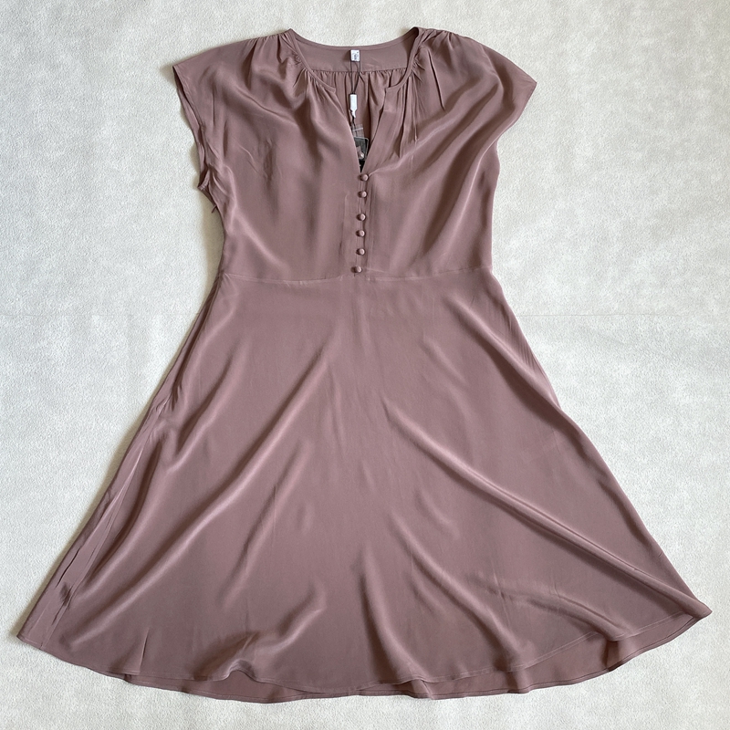 【现货 XL】Lilysilk莉莉秀客女士9568桑蚕丝真丝包扣短袖连衣裙