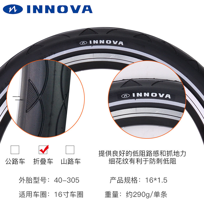 INNOVA伊诺华16*1.5 305折叠自行车外胎 带反光条 16寸小轮车轮胎