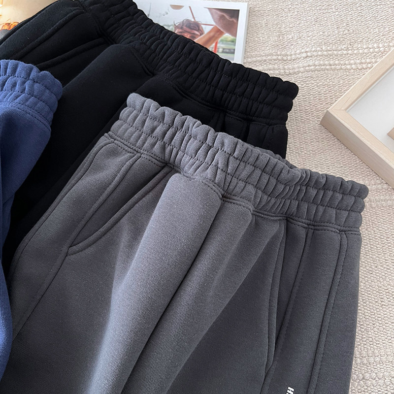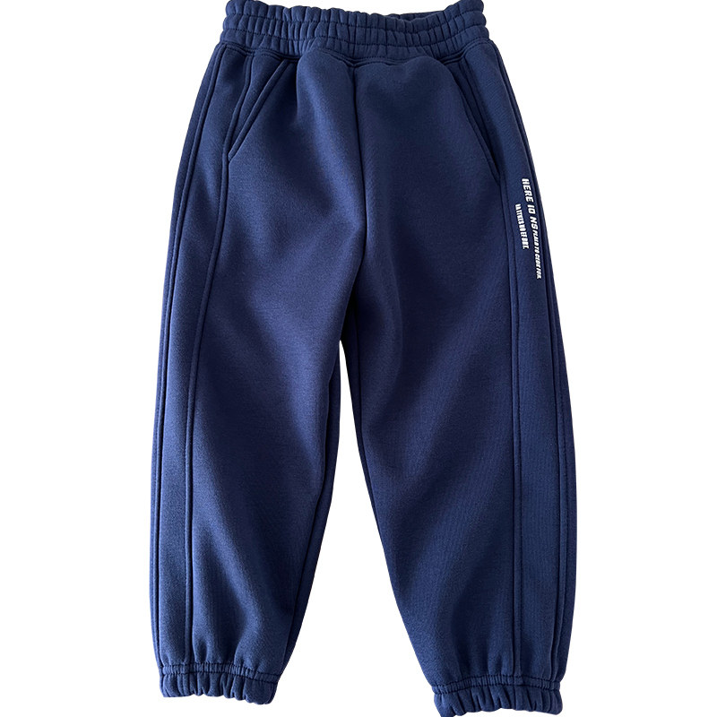 小字母男童纯色加厚加绒休闲长裤中大童时尚运动卫裤保暖收口裤子