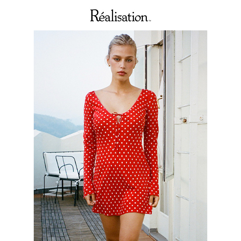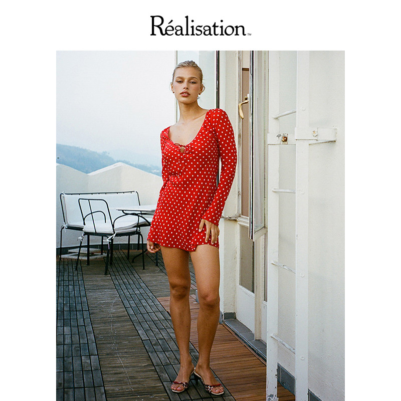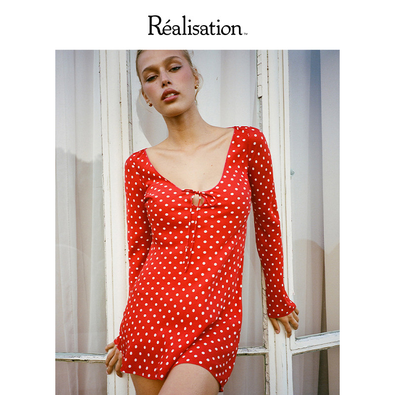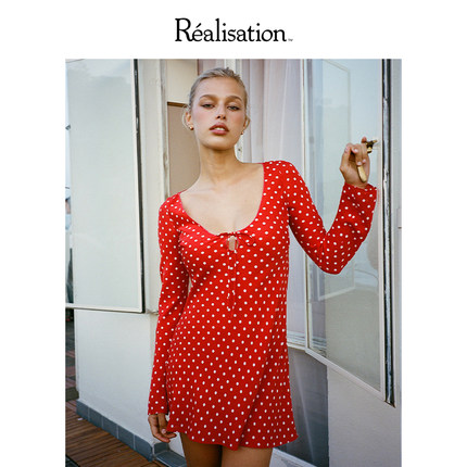RealisationPar 连衣裙红色波点长袖真丝斜裁A字短裙 The Serena
