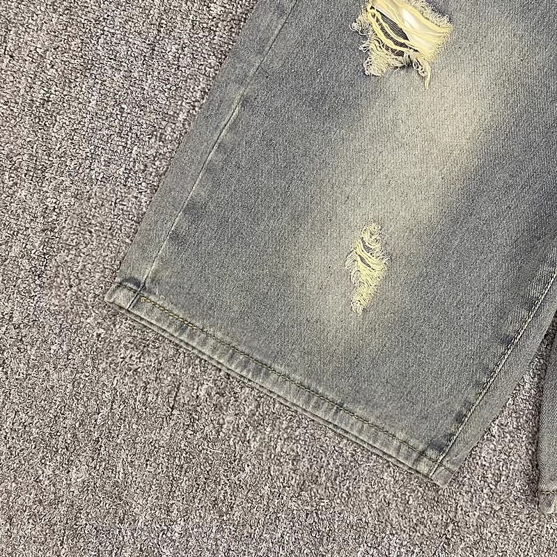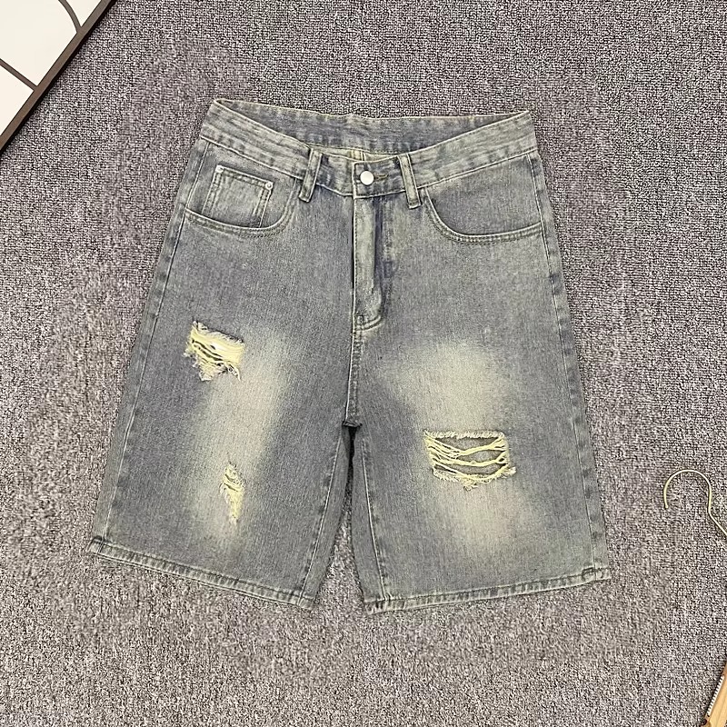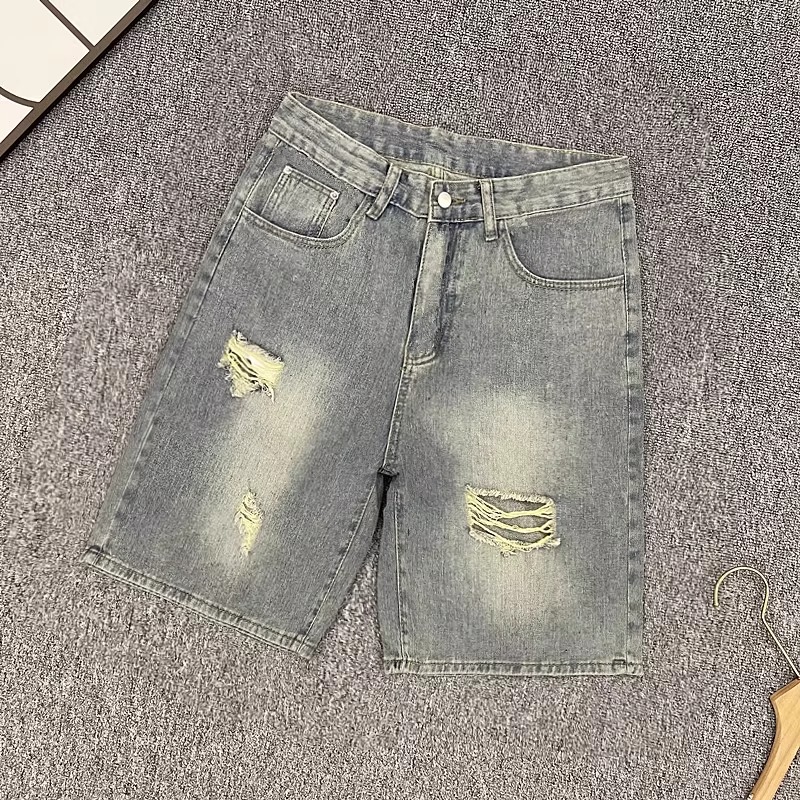 美式高街破洞牛仔短裤男2025新款夏季潮牌宽松直筒做旧五分裤5分
