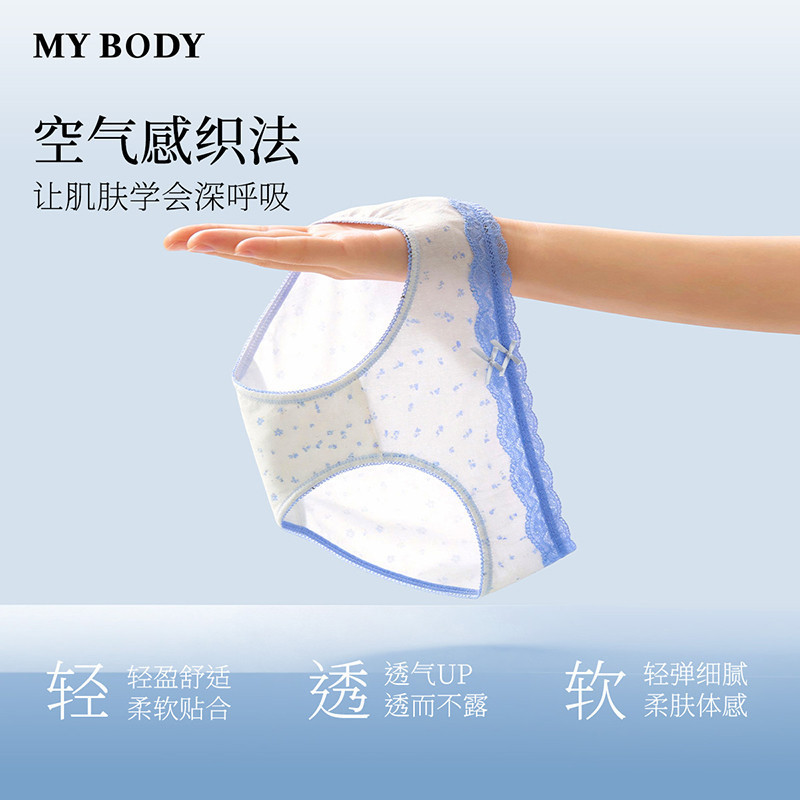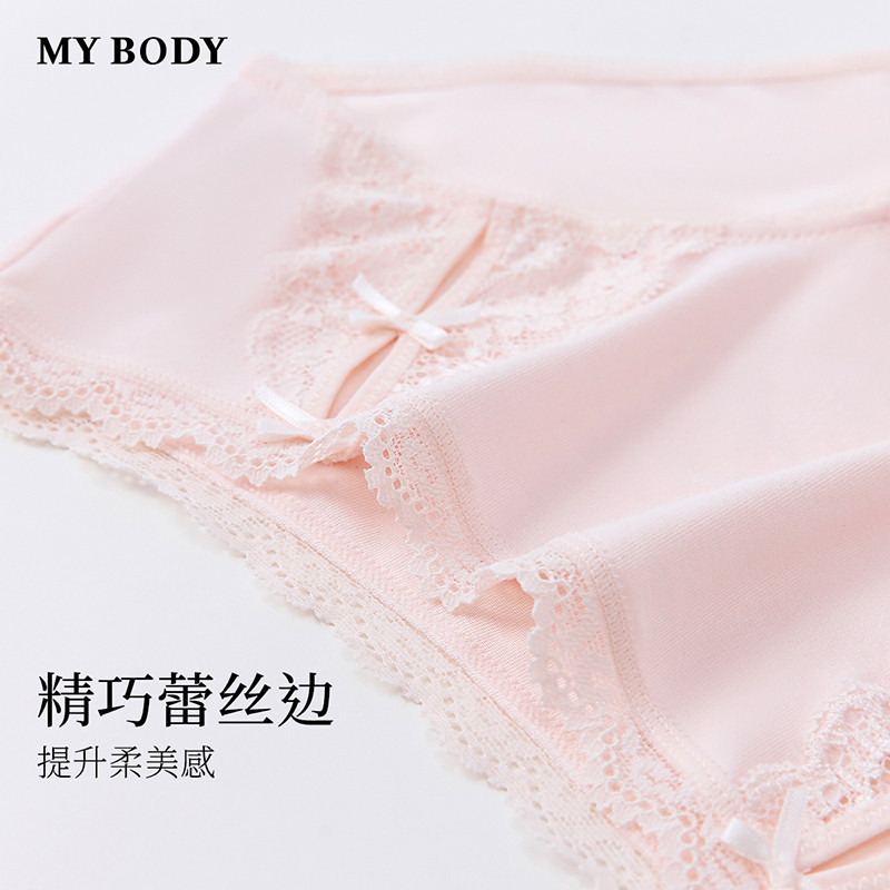 MYBODY商场同款新款内裤女法式碎花浪漫蕾丝莫代尔女生三角裤套装