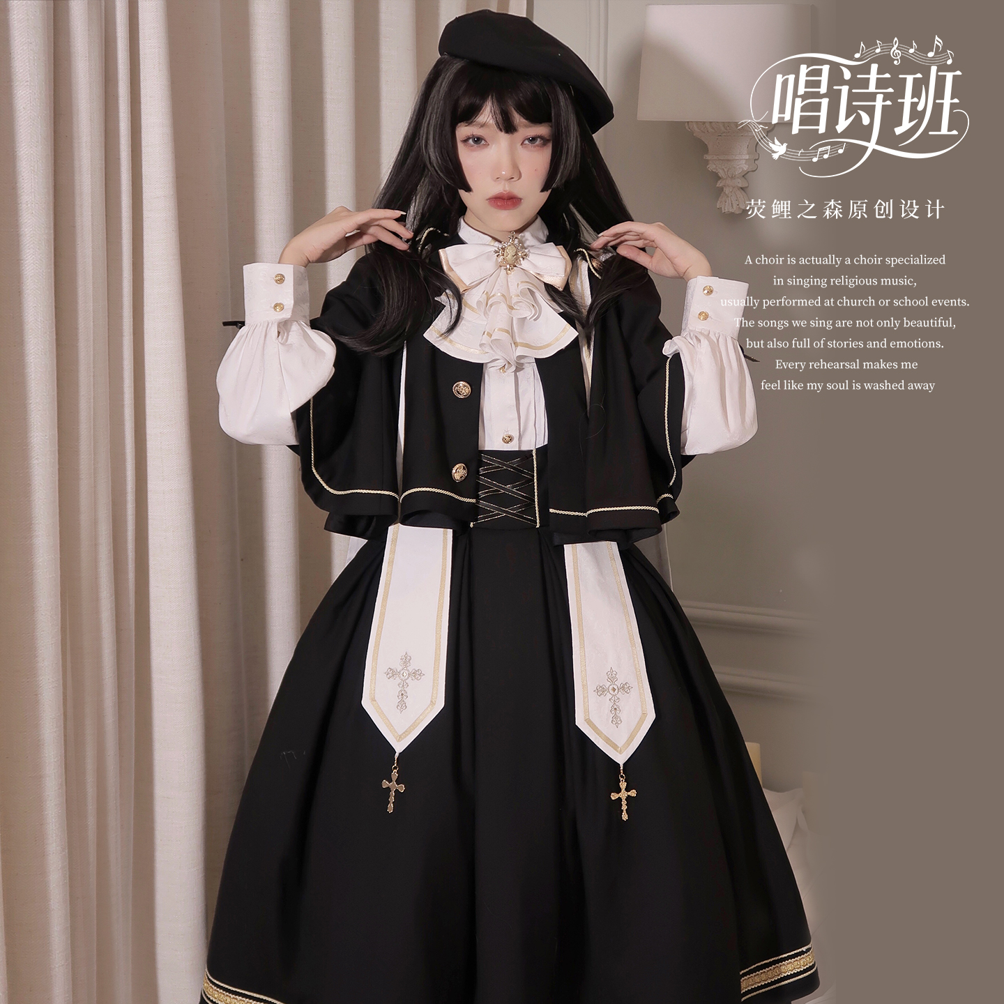定金 荧鲤之森 唱诗班lolita军lo学院风sk长款cla系洛丽塔连衣裙
