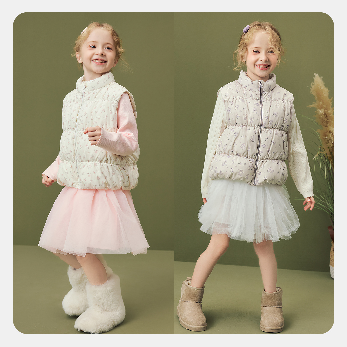 迷你巴拉巴拉女童羽绒马甲秋冬装儿童中大童碎花洋气保暖立领外套
