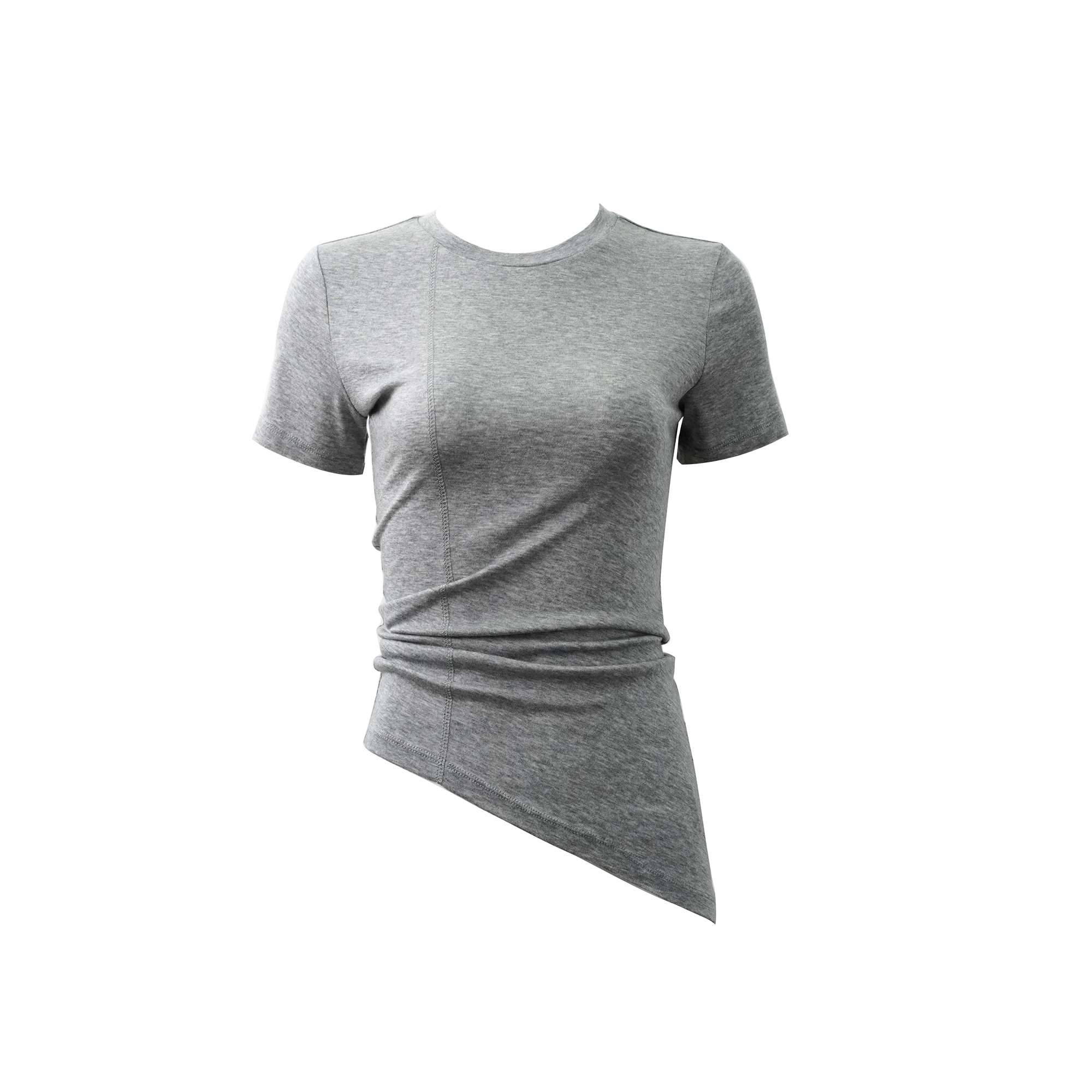 亲肤柔软圆领天丝羊毛不对称修身褶皱短袖T恤女夏薄款设计感上衣