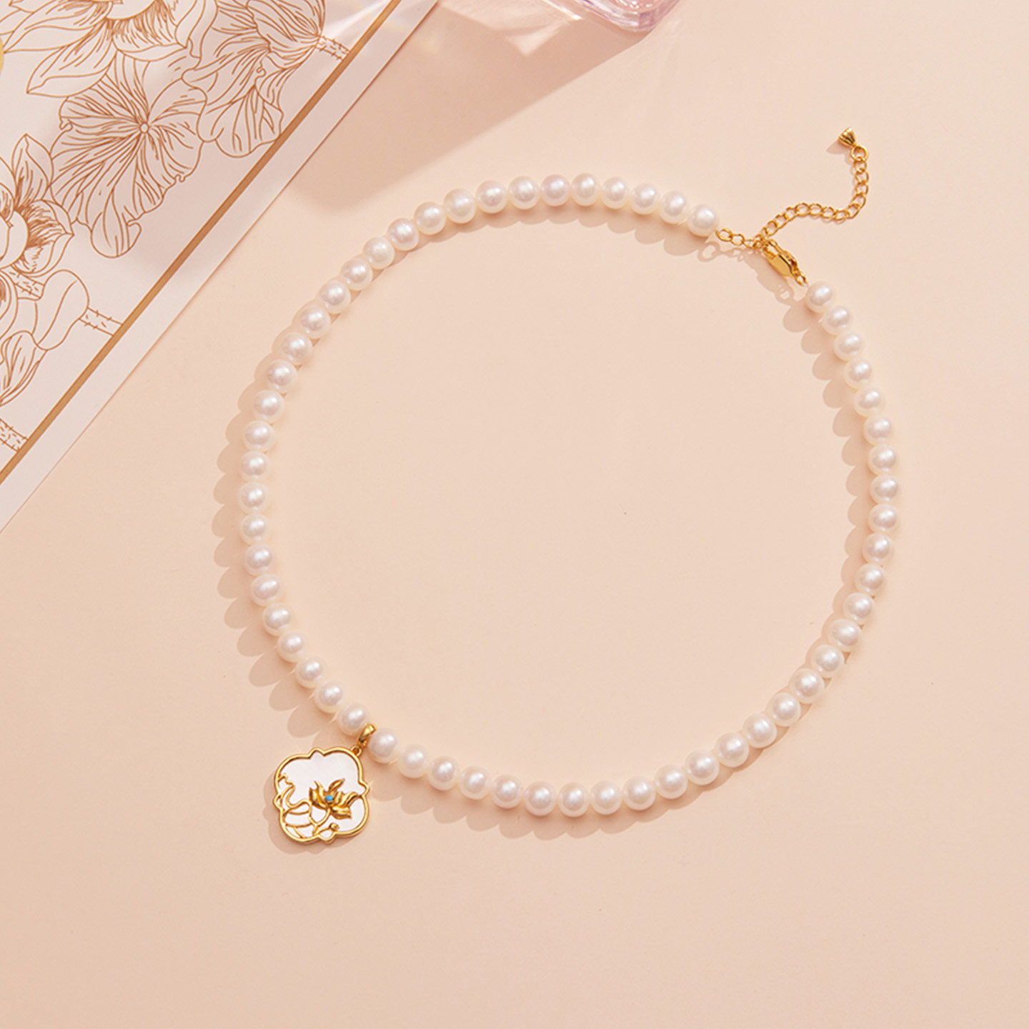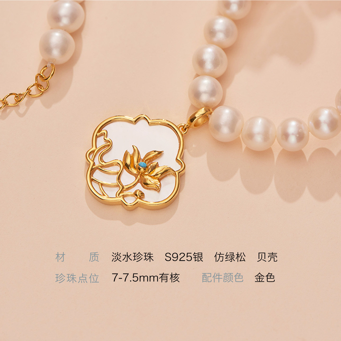 老凤祥淡水珍珠项链颈链花开莲莲感恩礼盒轻奢吊坠妈妈款生日礼物