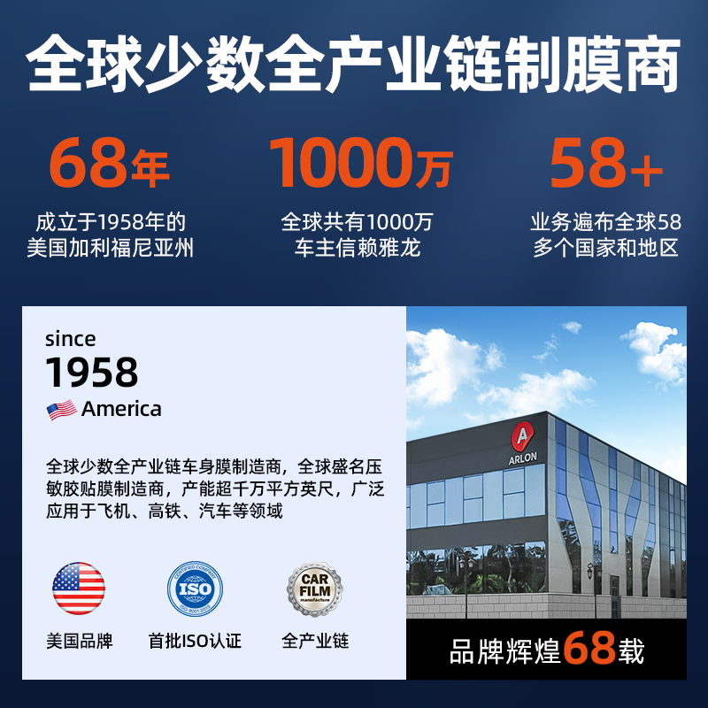 ARLON雅龙 汽车贴膜 前挡风玻璃隔热防晒防爆膜侧挡摸后挡玻璃膜