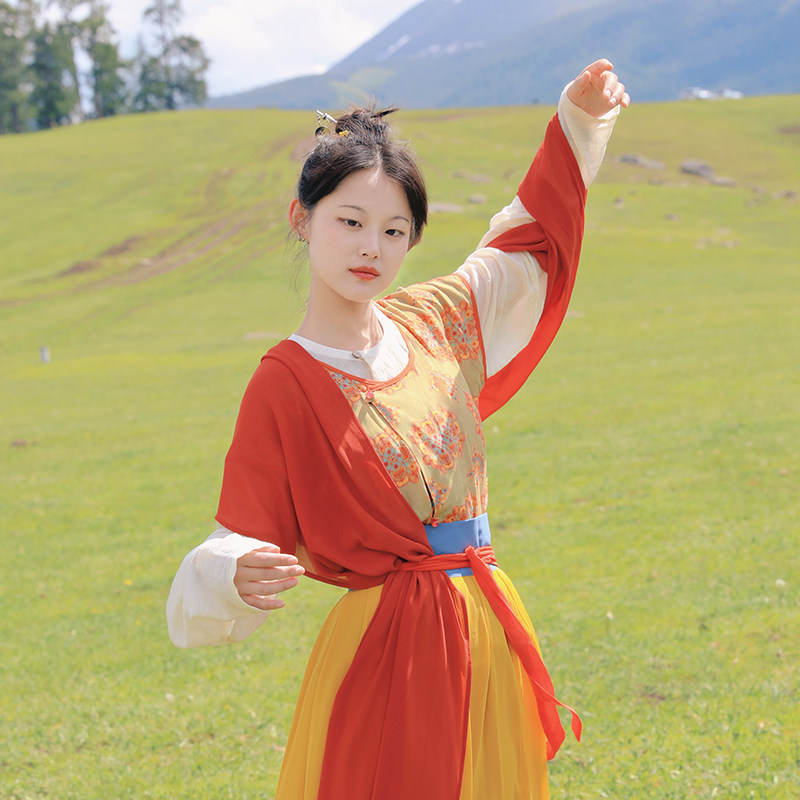谜阿凰【桃之夭夭】唐风半臂原创复原汉服套装日常通勤春夏季女款