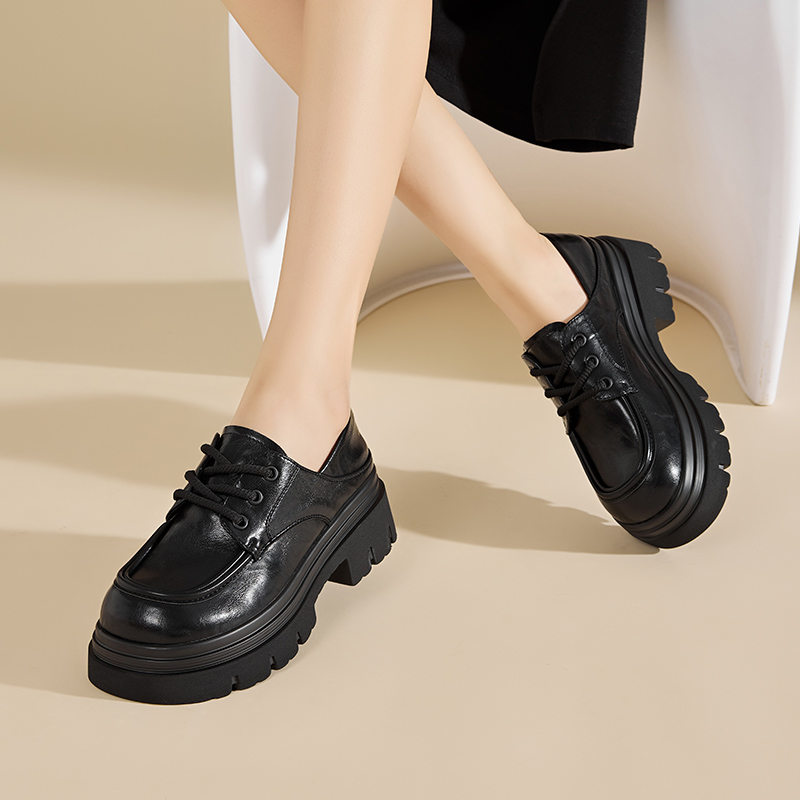 香香莉官方品牌店正品设计师乐福鞋女2025年春季松糕鞋百搭小皮鞋