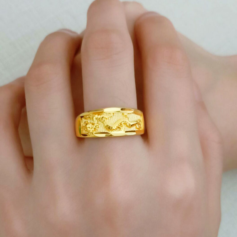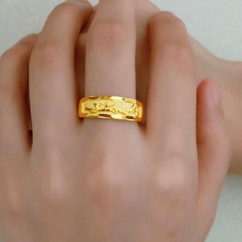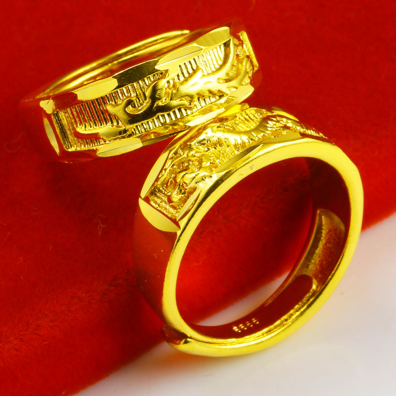 免税仿真黄金戒指男女龙凤戒子情侣对戒结婚首饰镀金对戒沙金指环