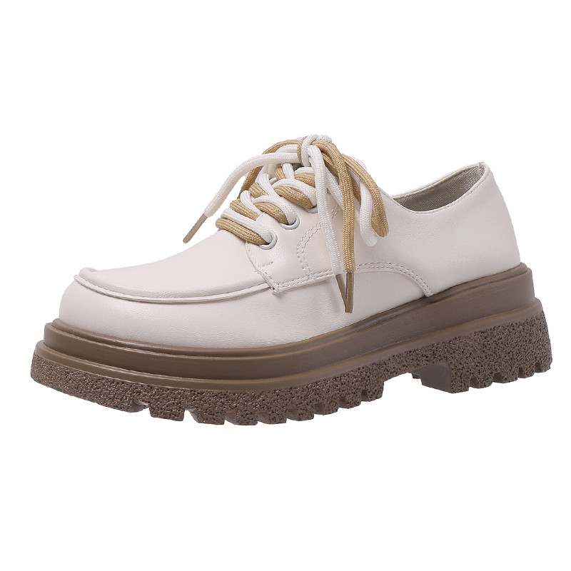 圆头厚底小皮鞋学院风系带单鞋